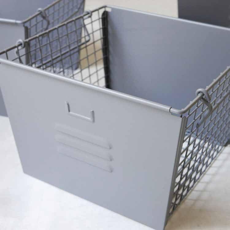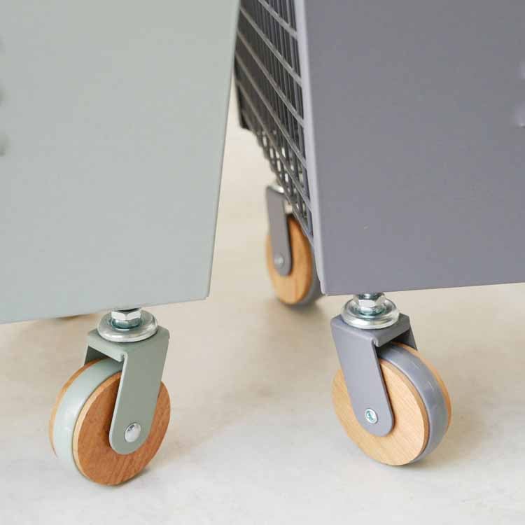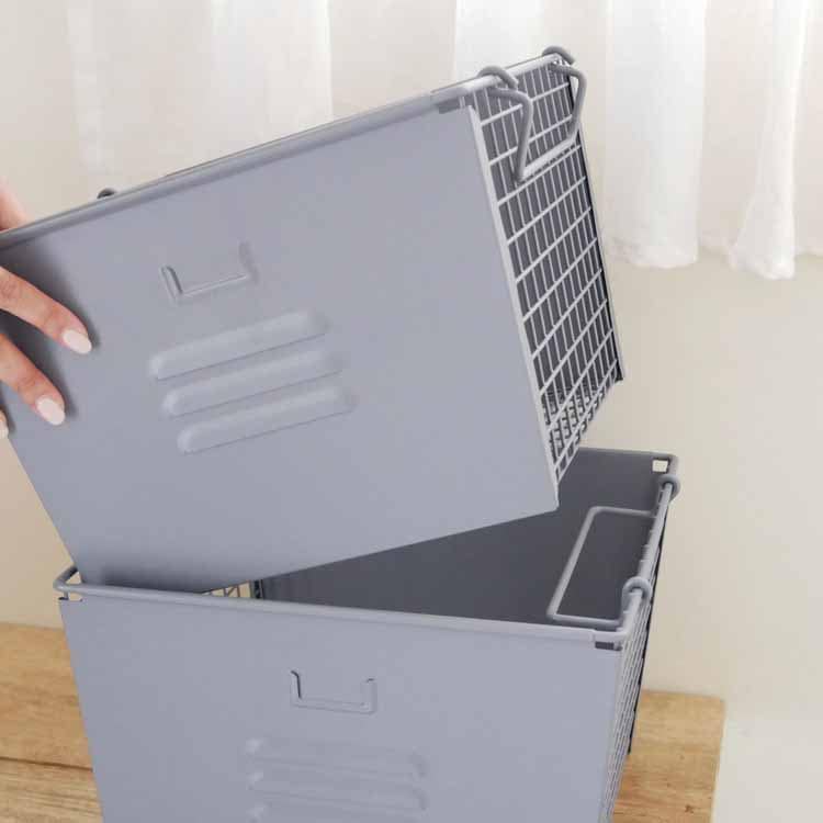 使い勝手の良いバスケットワゴン 「日々の暮らしをより楽しく、より豊かにする」がテーマのインテリアブランド「Mash(マッシュ)」より、キャスター付きで移動も楽々のスチールロッカーをイメージしたような無骨なスタッキングボックスセットのご紹介です。スタッキングボックスセットは、サイズの同じボックスの3つセットなので、積み重ねて使ったり、バラバラに使ったりとシーンに合わせて形を変えてご使用いただけます。リビングやランドリースペース、キッチンや子供部屋など利用シーンは色々。カラーは、絶妙なニュアンスカラーのグリーンとグレーの2色で、見せる収納としてお洒落なインテリアになります。キッチン収納にぴったり キッチンではキャスター付きの収納がマスト。限られたスペースでも移動できれば、キッチン仕事もはかどりそうですね。サイドと底面はメッシュ状になっていて通気性も抜群なので、野菜のストックにもぴったり。何かと物で溢れがちのキッチンも3つのバスケットでスッキリ片付きます。おもちゃをスタイリッシュに収納 お子さんが小さい時は、リビングにおもちゃを置いているというご家庭は多いはず。できるだけ生活感を出さずにお洒落に収納したいものですよね。そんなおもちゃやぬいぐるみ、絵本などの収納をお洒落に叶えてくれるのがこのスタッキングボックスです。また、ボックスの2面は中が見えないので、無造作に入れたおもちゃを隠せるのも嬉しいポイントです。小さなお子さんのいるご家庭では、オムツの収納にも最適です。持ち手を畳んでスタッキング 持ち手は可動式なので、内側に収めるとスタッキングができます。また、使わないときは持ち手を外側にするとコンパクトに重なるなるのも嬉しいポイントです。