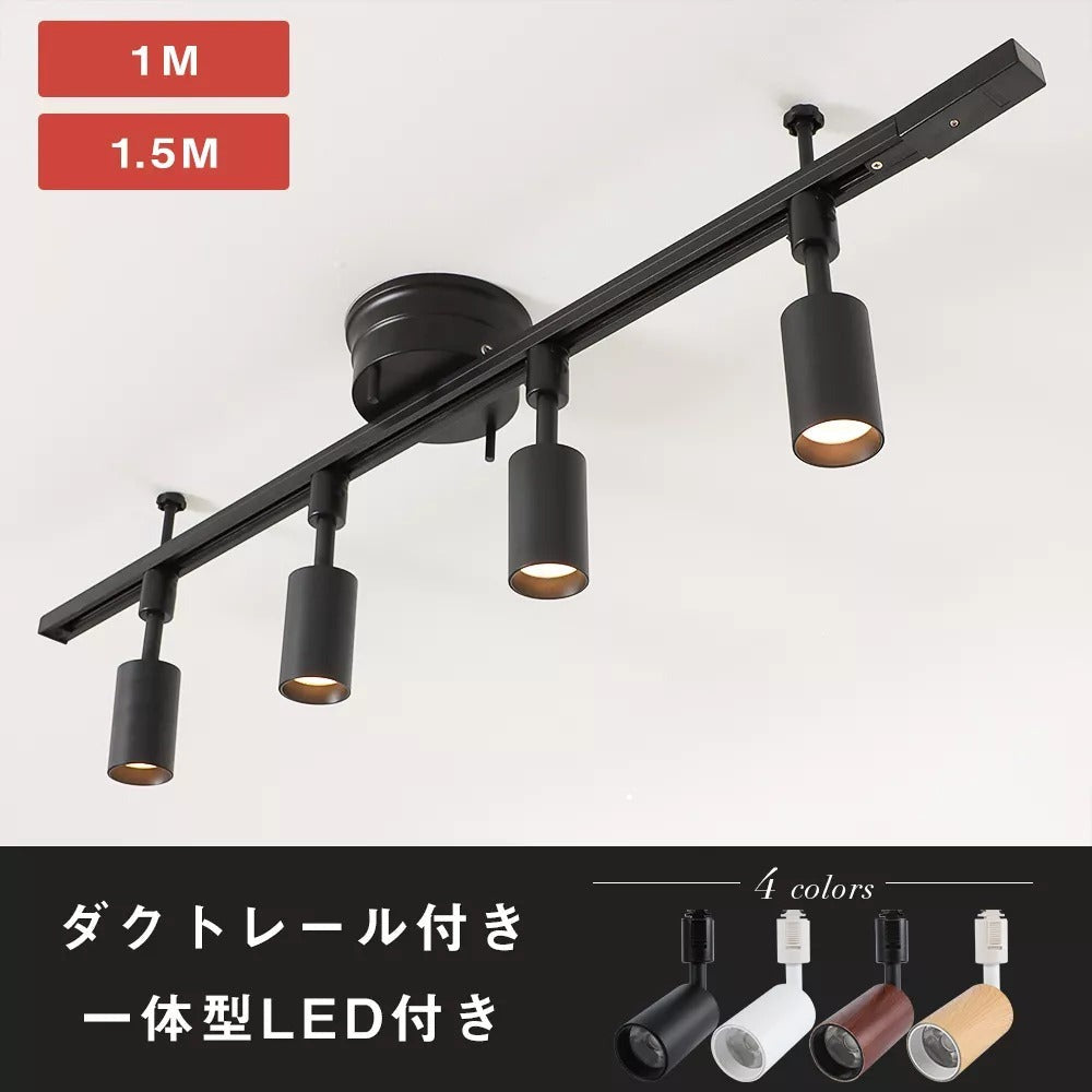 1M/1.5Mライティングレール+LED一体型スポットライト4個を組み合わせたシーリングライトです。色とデザインの組み合わせを悩んでいるお客様に特にお勧めです。4色(ホワイト、ブラック、ナチュラル、ブラウン)を用意しており、シーンや雰囲気に合わせてお選びいただけます。