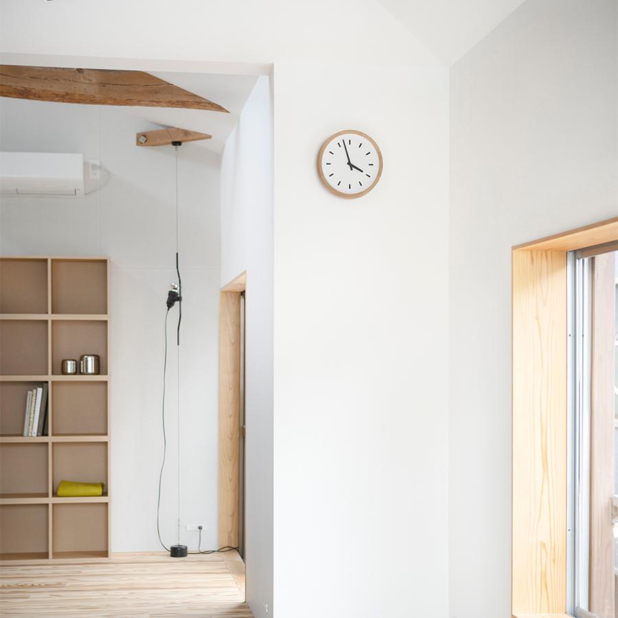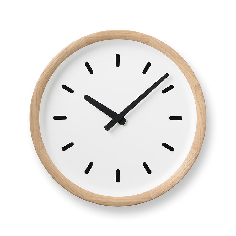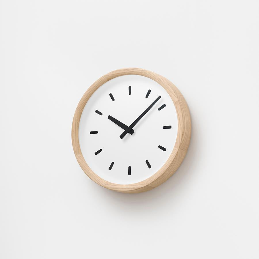 雫の様な先が窄まったライン指標のデザインの時計です。時間の読みやすさを高めると共に、すっきりとしながらしなやかな印象を与えます。器の形から着想を得てデザインした壁掛け時計です。