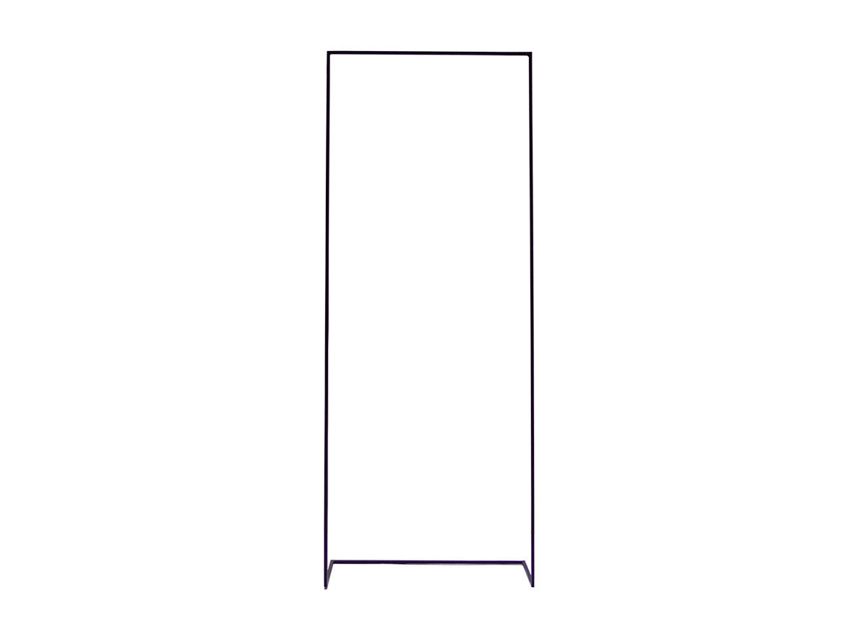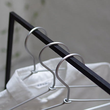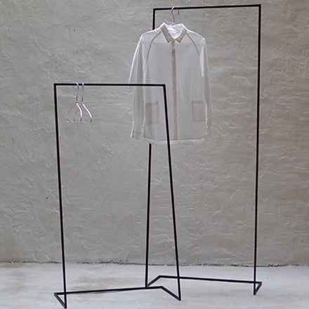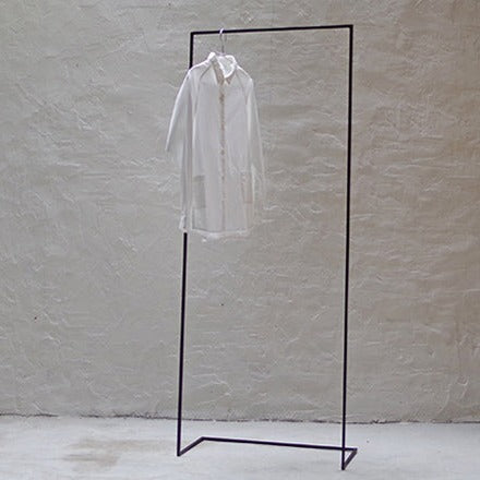 アイアンを使ったシンプルなハンガーラックです。できる限り細くしたフレームが空間を切り取る額縁のように飾るものを美しく見せ、主張しすぎないシルエットがお部屋に上手く溶け込みます。家庭だけでなくショップの什器としても活用できるコートハンガーです。