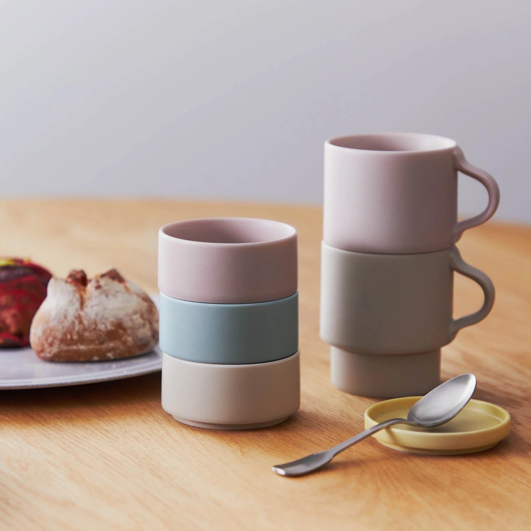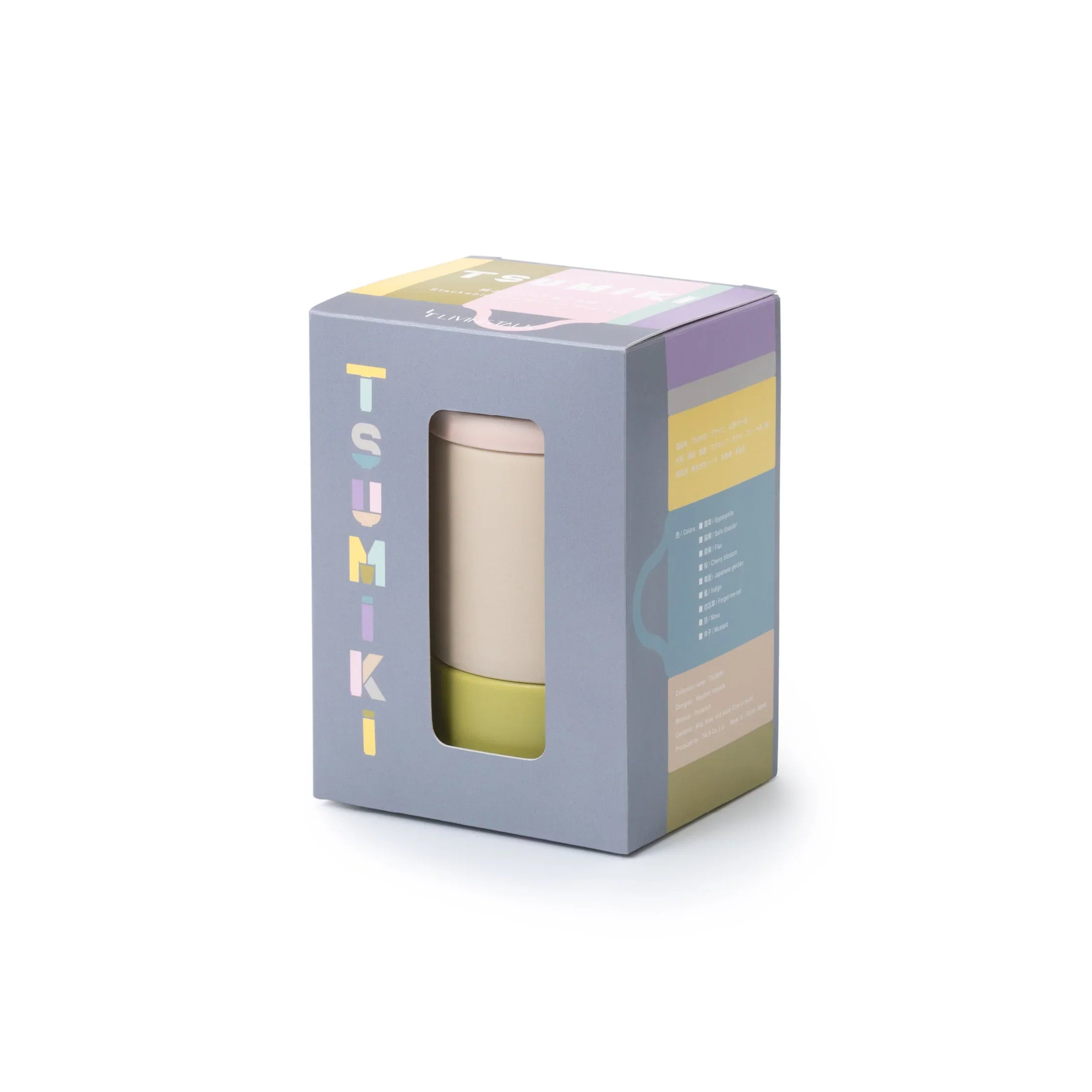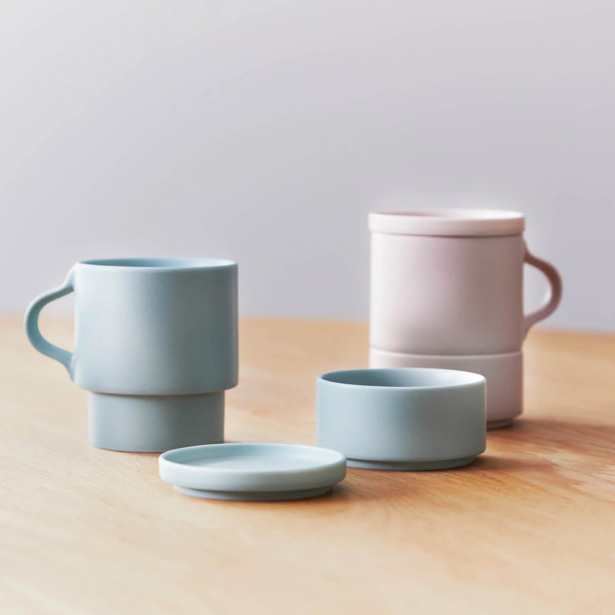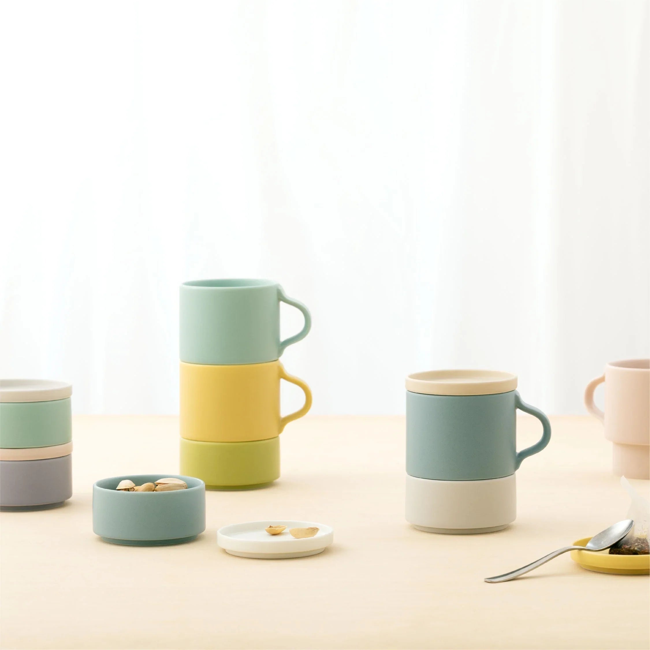積みかさねて美しく置ける器ツミキは積みかさねて美しく置ける器です。同径のマグカップとボウル、プレートはどの順でも積め、マグは取手が繋がるように連続します。プレートをマグにのせると紅茶を淹れる間保温し、ボウルにのせると蓋付き容器に。使ったティーバッグやスプーンはプレートに置けたりと、ツミキはティータイムを快適にします。色は和の草花九種で構成され、積むと和やかな色彩がかさなり合います。マグ・ボウル・プレートセットは専用のパッケージに入ります。贈り物に適した装いです。