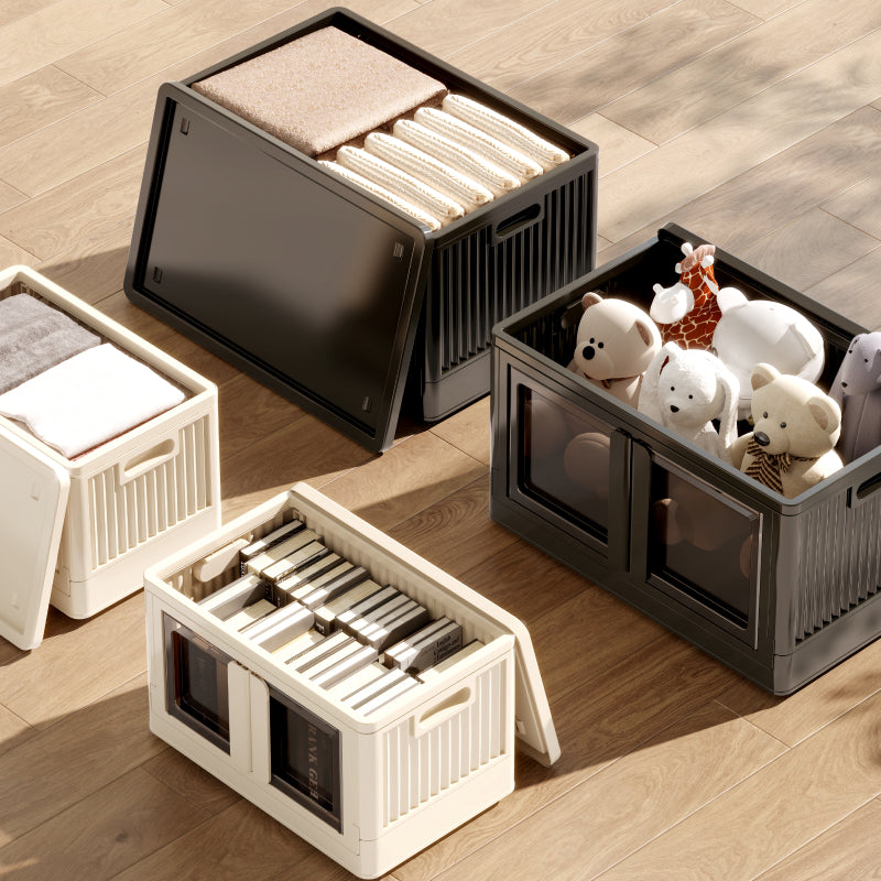 使わない時はコンパクトに収納できる折り畳みボックスです。直線によりモダンで洗練されたデザインが特徴で、シンプルながらもすっきりした印象を与えます。