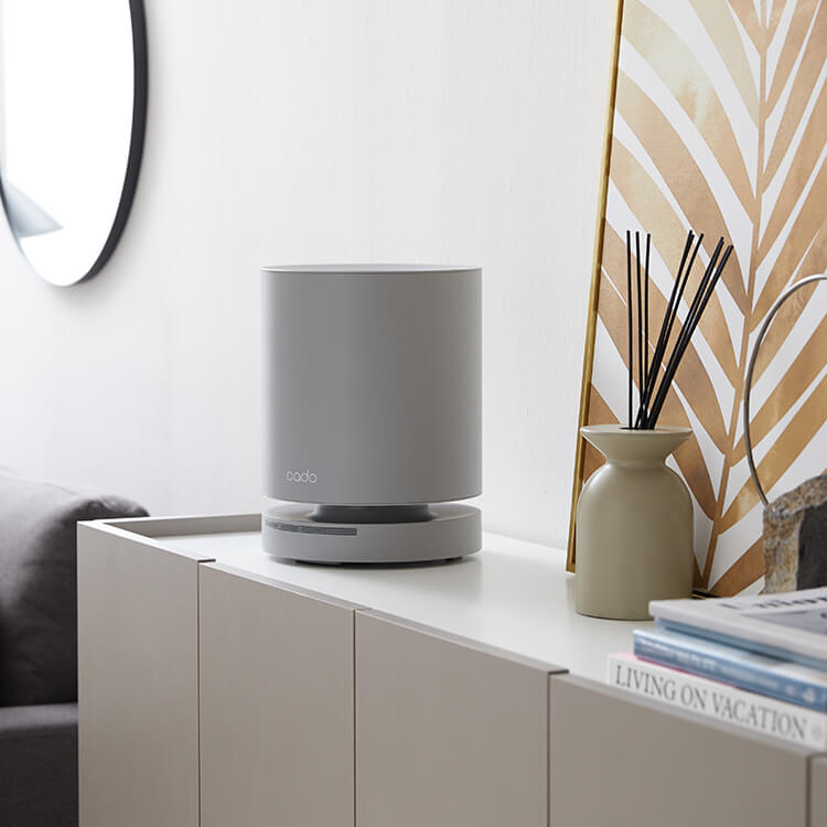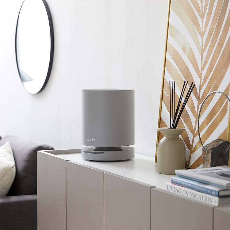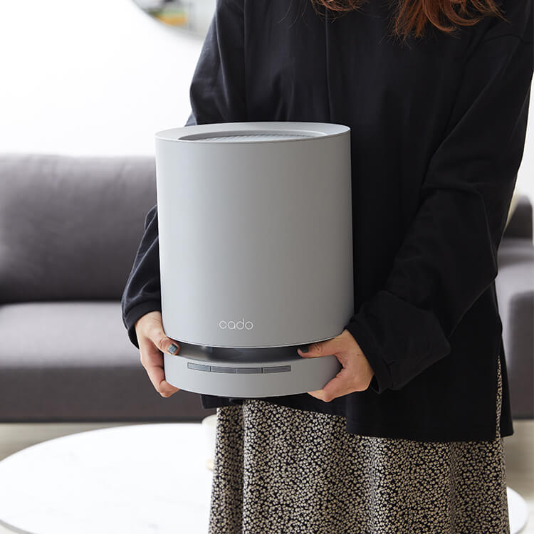 一見、空気洗浄機とは思えないコンパクトで美しいボディに、強力なファンと高性能フィルターを搭載しました。花粉やホコリ、タバコの匂いを除去します。「空気」というカテゴリーに特化したメーカー「cado(カドー)」。「空気をデザインする」というタグラインを掲げ、デザイン先行のデザイン家電ではなく、機能性を伴った、「人に寄り添ったプロダクト」を市場に送り出しています。大型の空気清浄機は床置きが前提でしたが、当商品はコンパクトなためデスクの上や、ベッドサイドに置くことができます。性能を追求することで生まれた理にかなった円筒のデザイン。360度全面から室内の空気を循環させます。