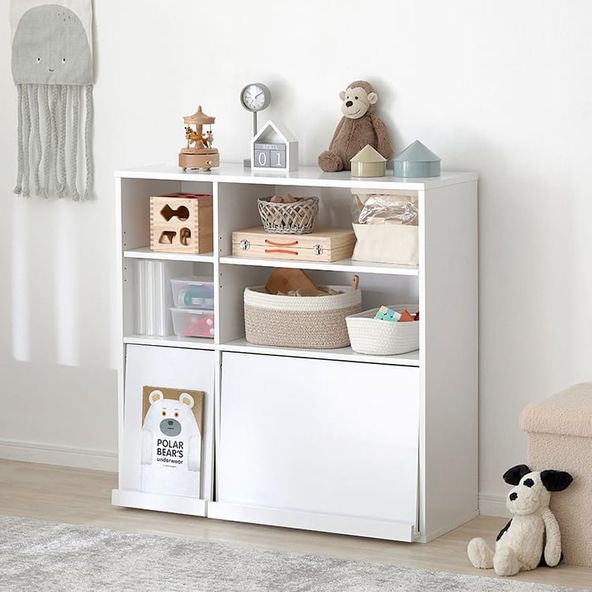 隠したい小物類はスッキリしまえて、お気に入りの本や写真はおしゃれにディスプレイ。そんな理想のリビングへと変わる、とっておきのフラップ扉式ラックです。