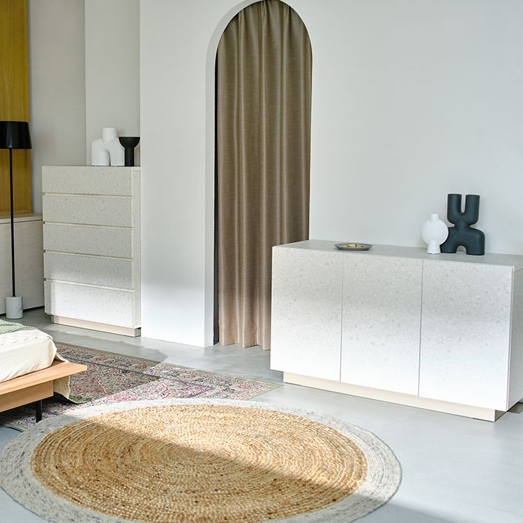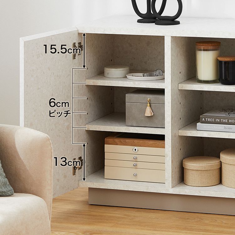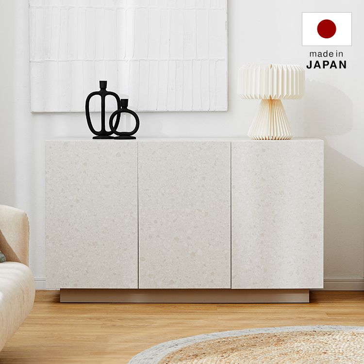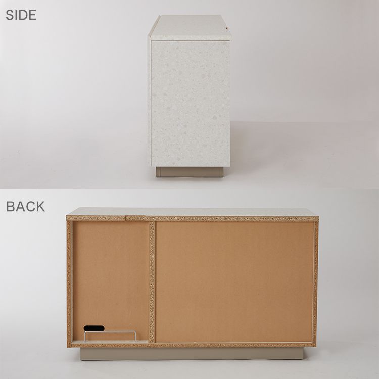 「海外インテリアに憧れるけど、お部屋に合うかわからない……」という方にオススメの、洗練された美しいテラゾー柄サイドボード。お部屋に置くだけで雰囲気がガラッと変わり、シンプルで落ち着きのある海外風インテリアが叶います。大理石柄ほど主張しすぎず、色と柄で様々な表情を見せるテラゾー柄シリーズ。海外インテリアのトレンド感を漂わせつつ、お部屋をセンスアップしてくれます。LOWYAオリジナル!細かな石をランダムに散りばめたような風合いで、やわらかな雰囲気を感じさせるワントーンのテラゾー柄。上品でこなれた印象をプラスしてくれます。テラゾーとは、イタリアの発祥と言われており、アールデコやモダニズムの潮流に乗って使われてきた素材です。最近では建売住宅などに使用されており、目に触れる機会が増えてきています。