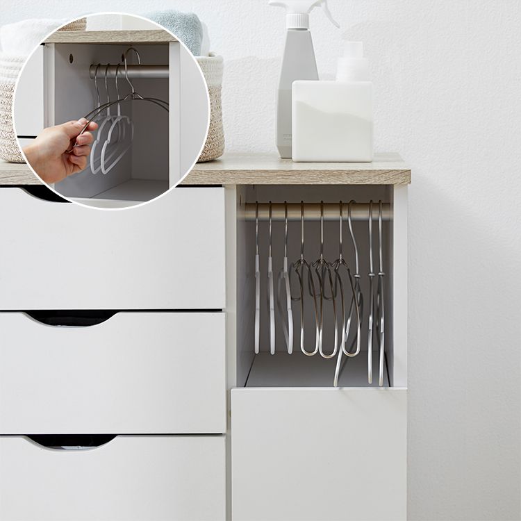 洗濯用品やタオルなど、生活に欠かせないアイテムで溢れているランドリールーム。「ごちゃごちゃして使いにくい」「どう収納したらいいか」など悩みの声も……。このチェストがあれば、快適なランドリー空間が叶います!モノが多い洗濯機周り。毎日使うものだから、使いやすくスッキリしたいですよね。そこで当社デザイナーが、おしゃれでスッキリ収納できるランドリーチェストをカタチにしました。洗濯機など、既に大きなものが置いてあるランドリールーム。圧迫感を感じさせないよう、空間に馴染むカラーとサイズでデザインしました。高さ90cmとロータイプだから、洗面台に合わせて使いたい人にピッタリ!天板には、優しい色合いでリアルな木目調を採用。全体のホワイトとの組み合わせで、ナチュラルな雰囲気を演出します。頻繁に使うモノや、ディフューザーなどを置くのに活躍!