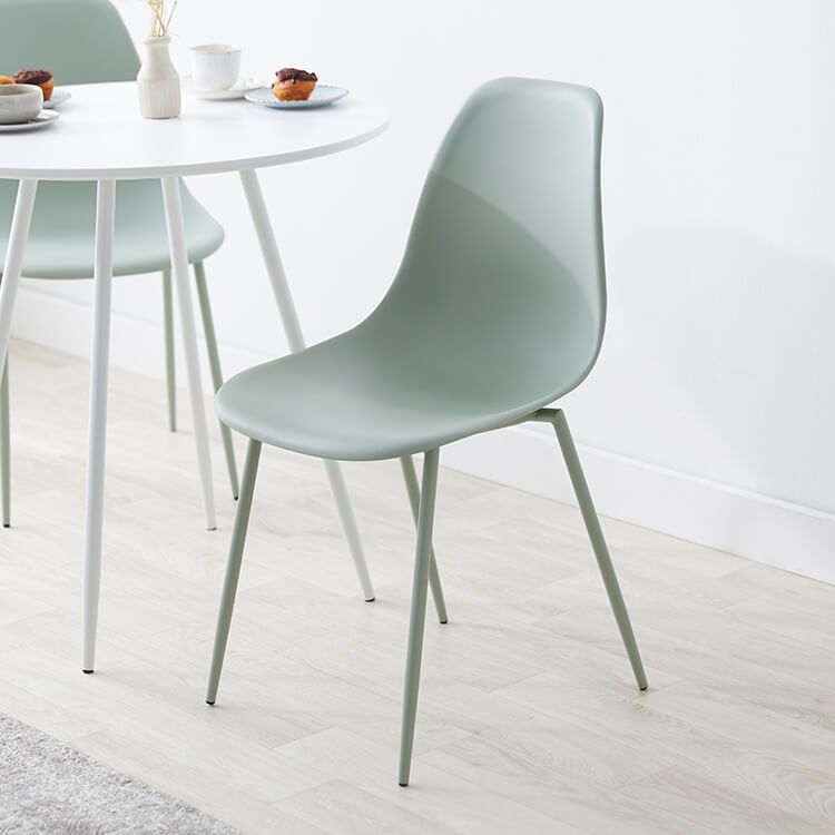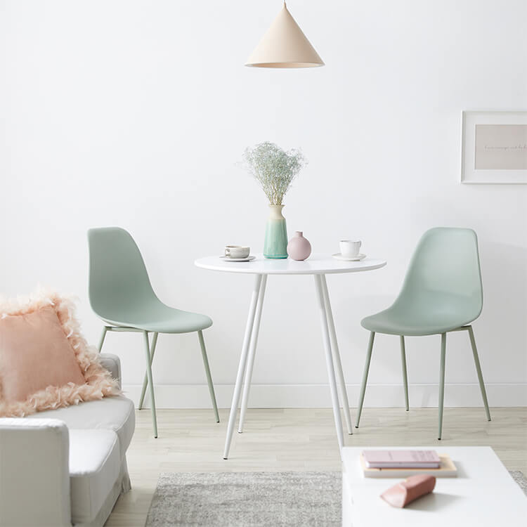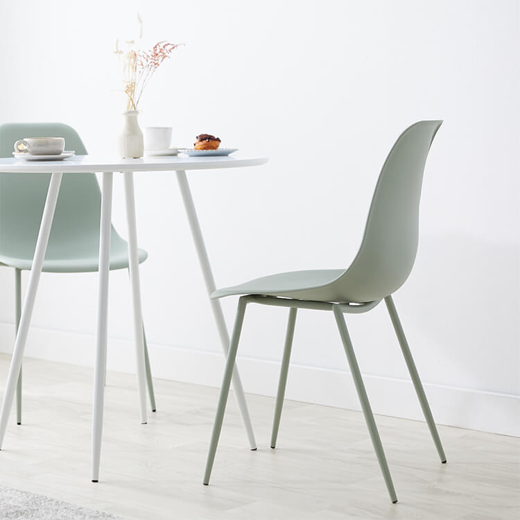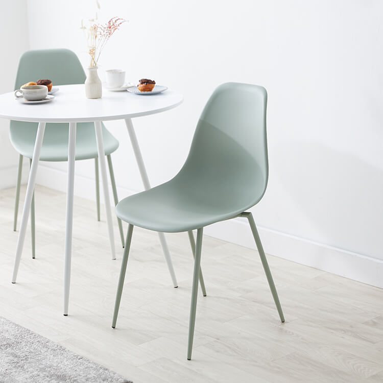「シェルチェア」のデザインを色濃く反映したおしゃれなダイニングチェア。スッキリとしたシルエットが、お部屋に居ながらおしゃれなカフェに居るかのような贅沢な気持ちにさせてくれます。置くだけでインテリアとして成立する、デザイン性の高いダイニングチェア。優しい色合いとシンプルな形状は、北欧風・モノトーン・ナチュラルなど様々なコーディネートに合わせやすく、おしゃれなインテリアを叶えてくれます。心弾むスタイルを作ってくれる、トレンドをおさえたパステルカラー。ありそうでなかった「こんなのが欲しかった」をカタチにしました。お部屋に圧迫感を与えないサイズ感で、1人暮らしや新婚さんのお部屋でも活躍します。