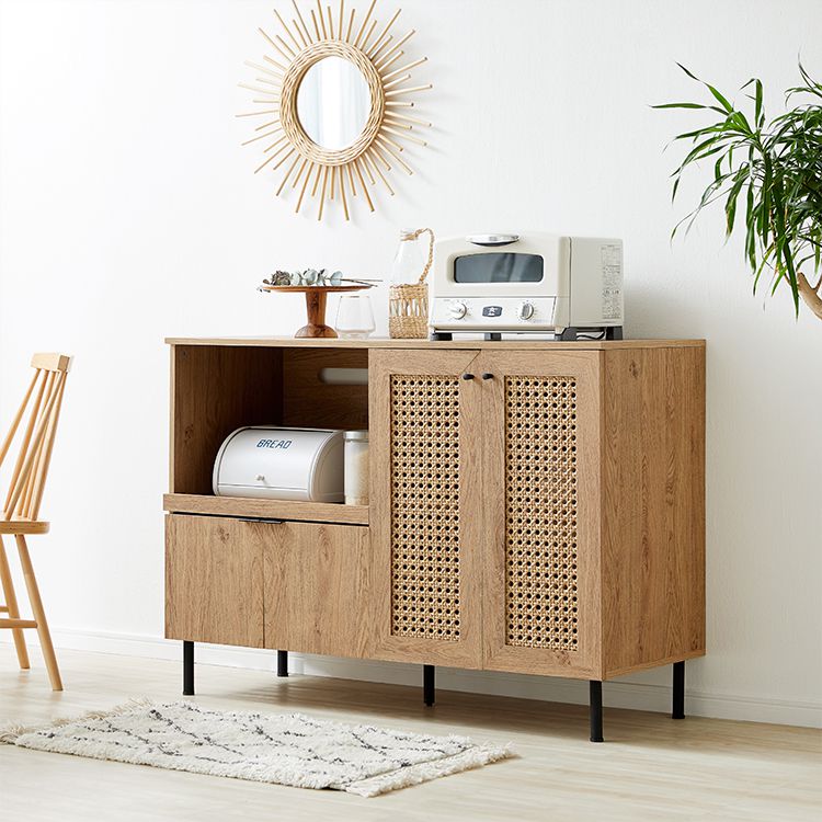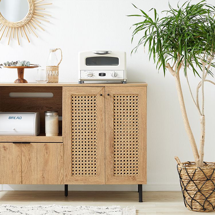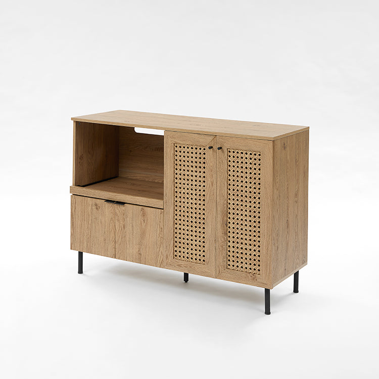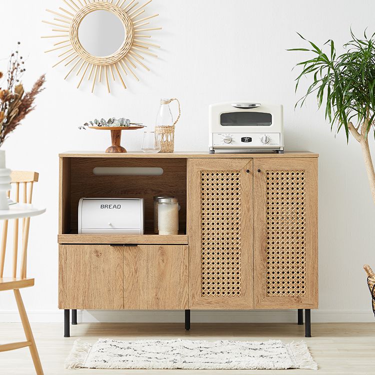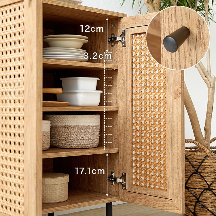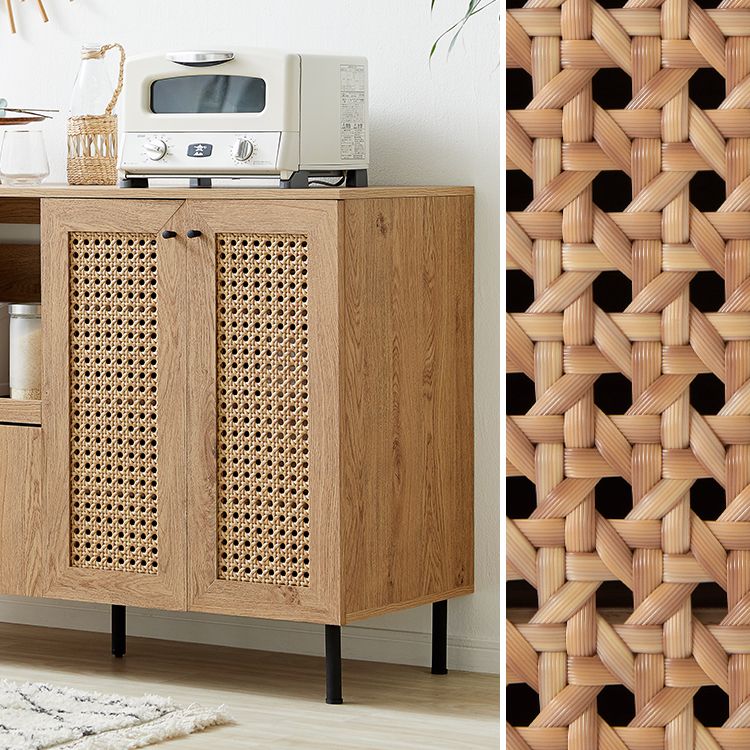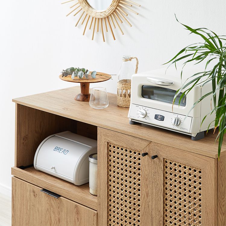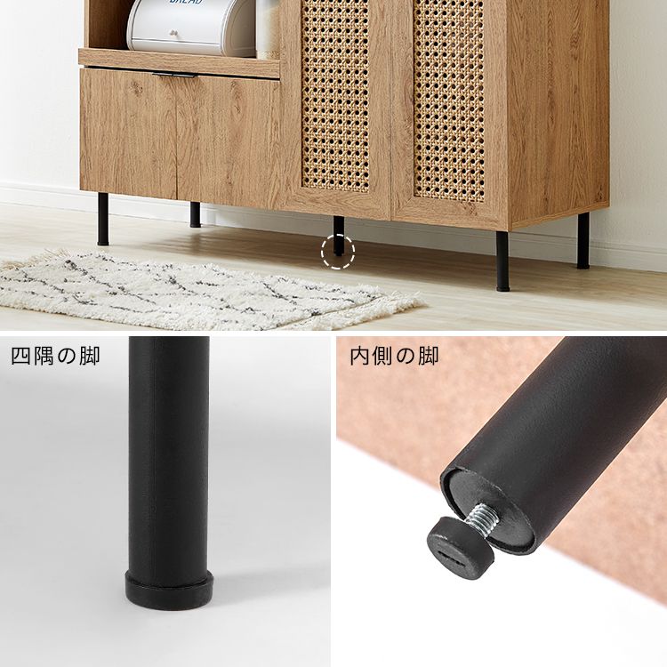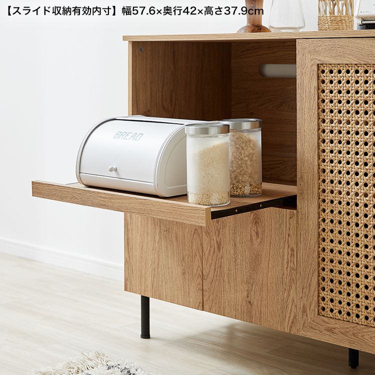 他とは違うおしゃれを取り入れたい人にぴったりの、ラタン調をさりげなくあしらったキッチンキャビネット。デザイン性の高さはもちろん、使いやすさ・収納力・コード配線にもこだわりました。広々とした大容量の収納力で、 すっきりとしたキッチンを作る、 ワイドな「幅120cm」タイプです。お部屋に合わせやすく、人とは違うモノを。リアルな木目調と細脚スチールの異素材を組み合わせることでこなれた雰囲気を演出。置くだけでセンスが光る空間に!こちらは当社デザイナーが独自のこだわりをもって完成させたオリジナル商品です。シンプルな中にも、他には無い味わいをデザインに落とし込み、カタチにしました。