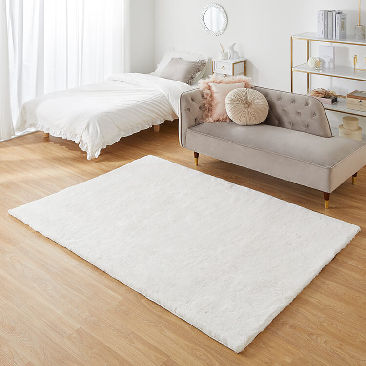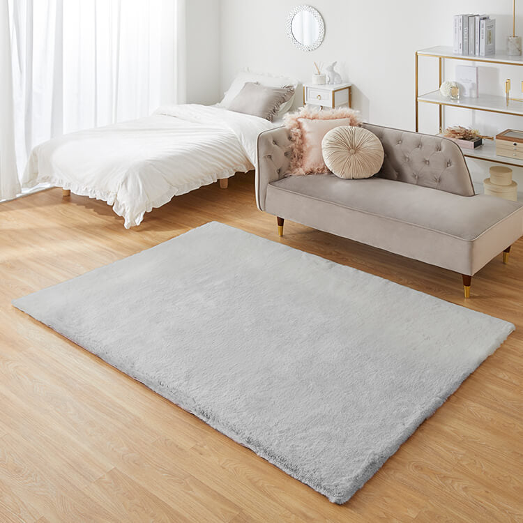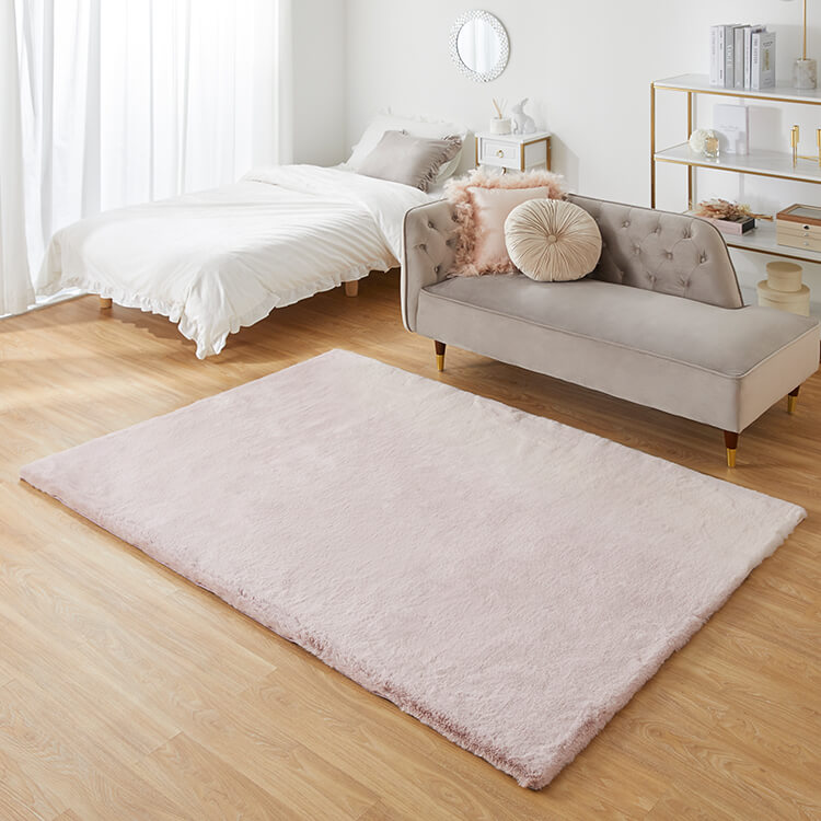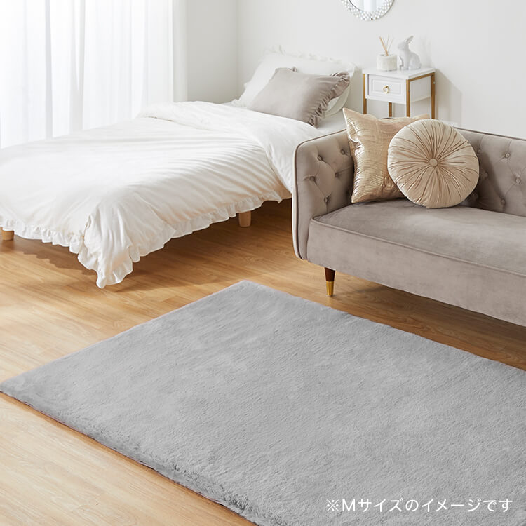 ふわふわな手触りのフェイクファーを贅沢にあしらったラビットファー調ラグ。自然な立体感を生む長い毛足が高級感をもたらし、大人可愛いリビング空間を演出します。「大人の女性」+「女子の可愛さ」をあわせた、エレガントでフェミニンなインテリア。可愛いものに囲まれたい、そんなあなたへ贈る大人可愛いシリーズです。触る度に手足をふんわり優しく包み込むファーのような毛並みが特徴のこのラグ。流れるようななめらかさがクセになる触り心地です。落ち着いた大人なカラーと、華やかな表情を見せてくれるラビットファー調ラグが、インテリアを引き立ててモダンなお部屋に。リビングやベッドサイドの印象がガラリと変わります。