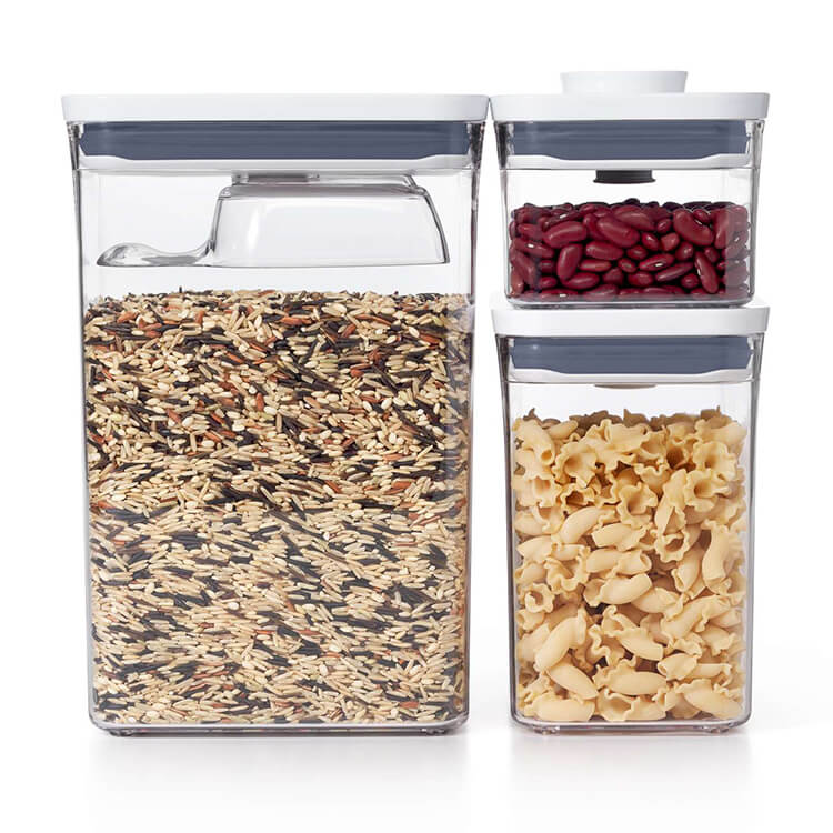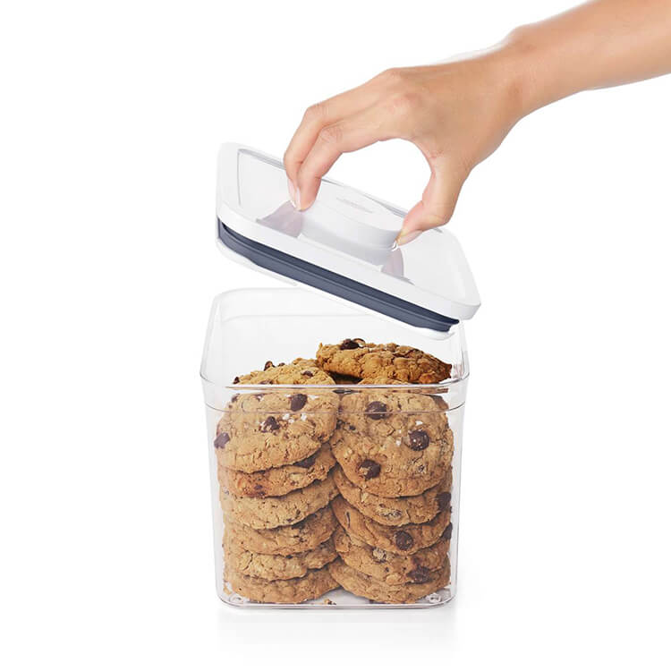 毎日使うものだからこそ、使い勝手の良さを追求した保存容器とスクープのセットです。「より多くの人にとって使いやすいデザイン」を意味するユニバーサルデザイン。男女問わず、お年寄りから子供まで、右利きでも左利きでも簡単に使える製品を作るアメリカのブランドです。スクープ付きなので、調味料やスナック、コーヒーなど幅広く活躍します。フタの真ん中についているボタンを押すだけで開閉ができます。調理中に片手がふさがっていても、ワンタッチ操作で密閉が可能です。