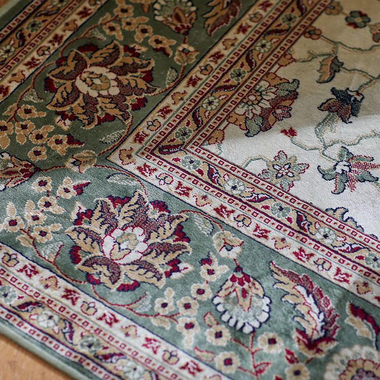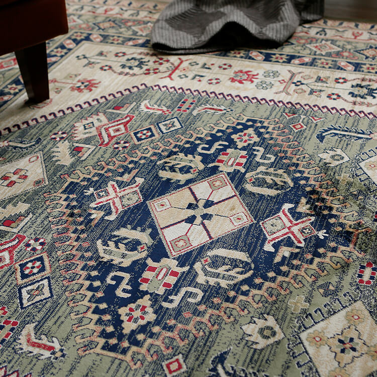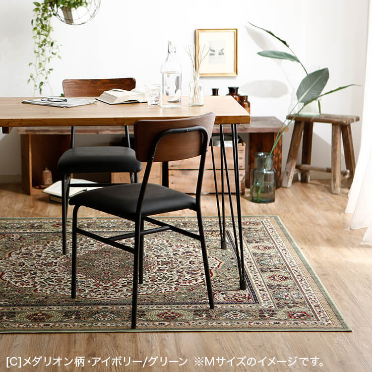 毛足の短いラグなので、汗ばむ日にも肌に貼りつくことなくサラっと爽やかに過ごせます。[Lサイズ:200×250]繊細で美しい柄のペルシャ絨毯風ラグ。敷くだけでお部屋をパッと華やぐ空間へ変えてくれる、インテリアの主役をあなたの元へ。昔から織物貿易の歴史をもつ、ラグの産出国としても有名なベルギー。そんなベルギーから、スマートなデザインマットが届きました。このラグをデザインしたのは、芸術の国、そして有数のラグ産出国であるベルギーで生まれ育ったISABELLE HOLLEBEQUE。「部屋の印象を左右すると言っても過言ではないものだからこそ、沢山のデザインからこれだ、と思える運命のデザインを見つけて欲しかったんです。この様々な個性の中からお気に入りを見つけてみてください。」