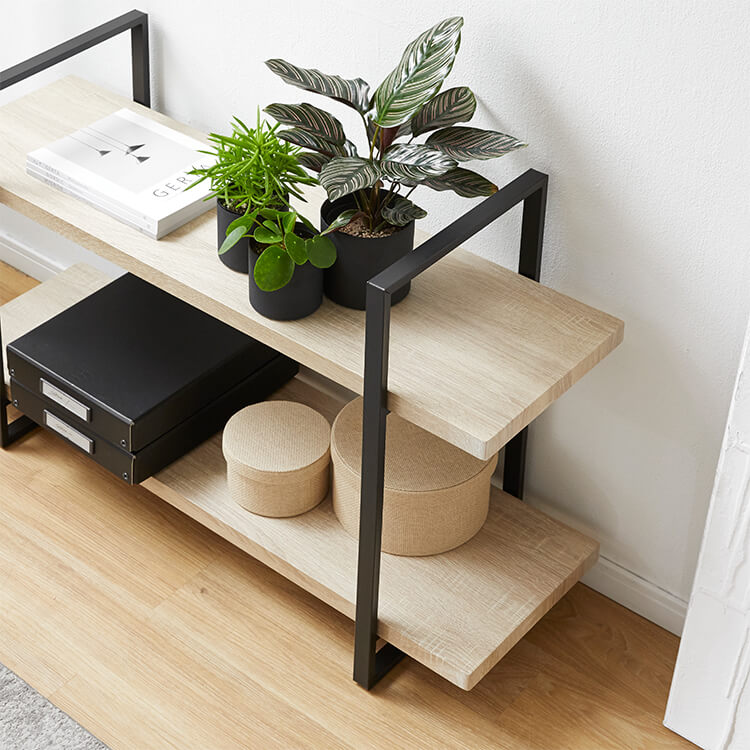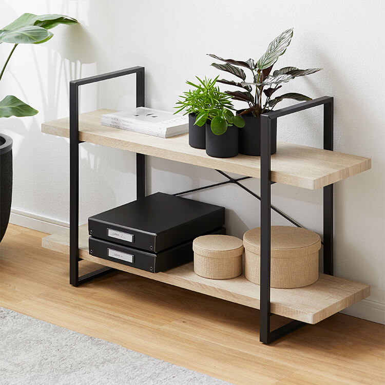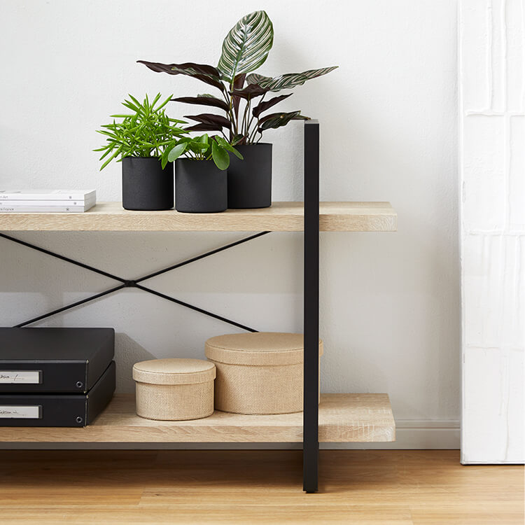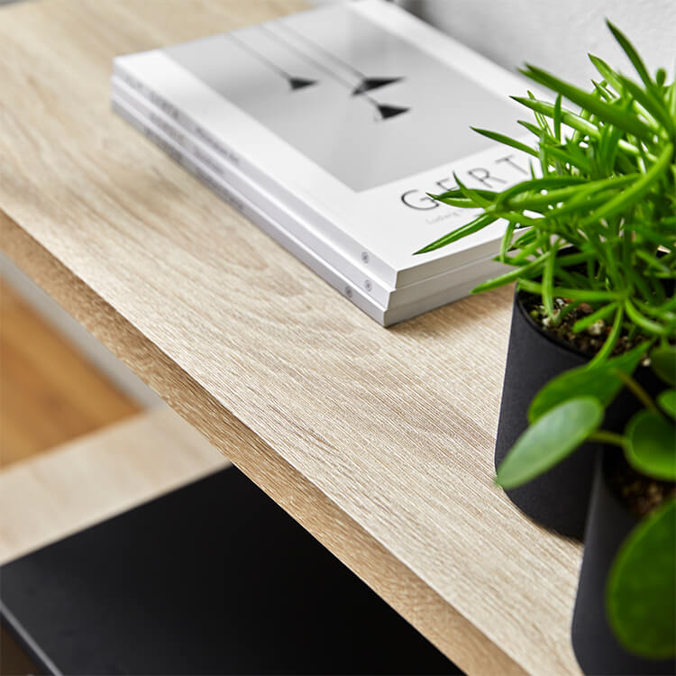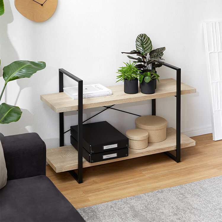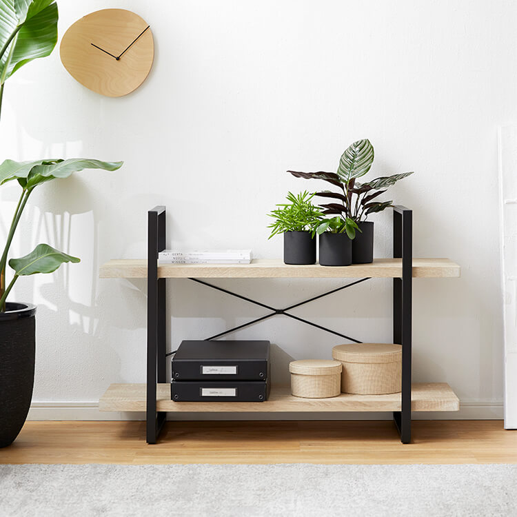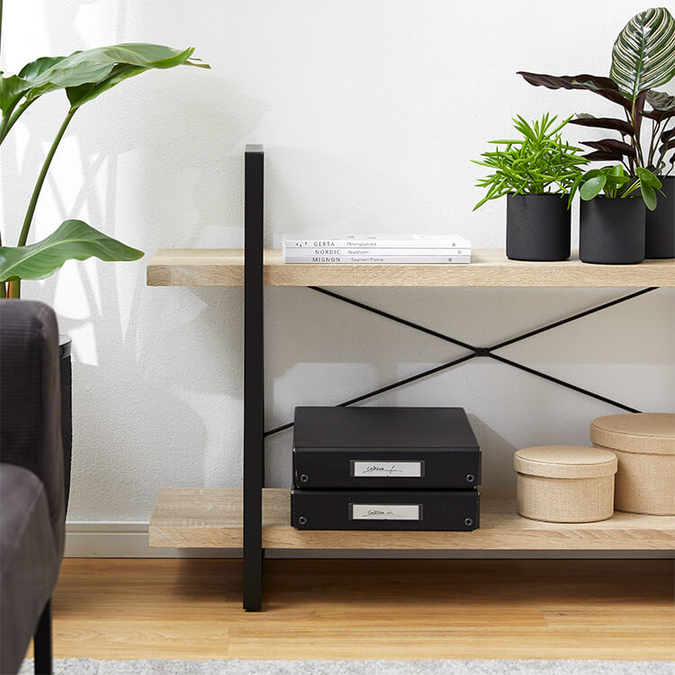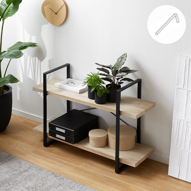 黒いスチールと木目調を組み合わせた、ナチュラルモダンなオープンシェルフ。お気に入りのアイテムを置くだけで、こだわりのディスプレイスペースが完成!シンプルデザインだからこそ、自分らしさが映えるスペースをつくれます◎マットな質感のスチールとナチュラルな木目調の異素材が織りなす、おしゃれなナチュラルモダンテイスト。お部屋にあるだけで、グッとセンスアップした空間を演出します!リアルな木目調がポイント!棚には天然の木目を連想させるナチュラルな色と柄を施し、凹凸がある触り心地にもこだわりました。デザイン性を高めるため、スチール部分を、少し内側に設計し、バランスにこだわりました。表面にはマットな質感が美しい塗装を施しています。シンプルでありながらも、おしゃれなアクセントに!