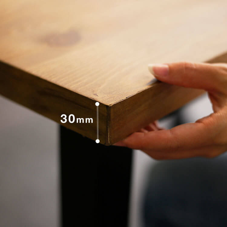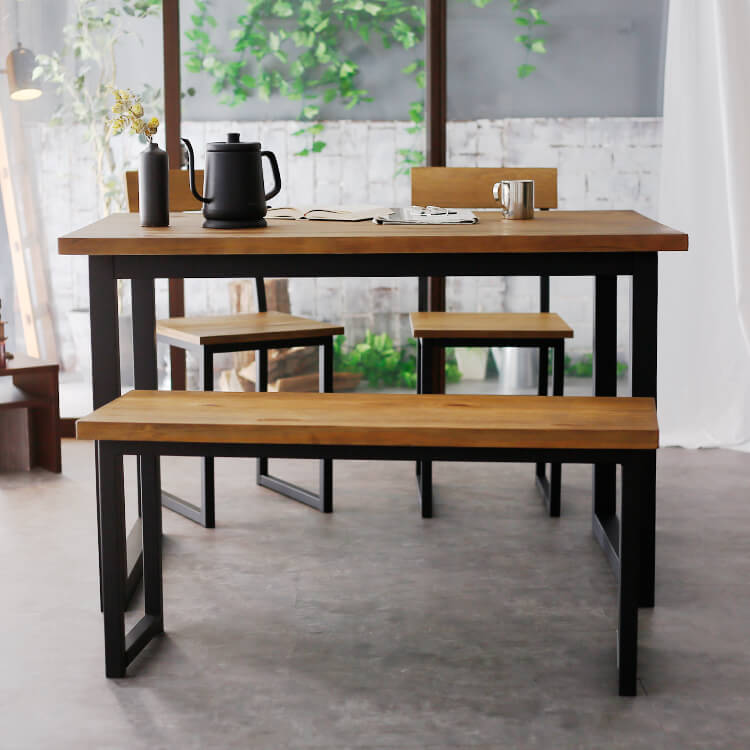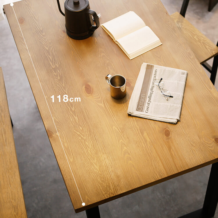 それは積み木を組み合わせるように、形を楽しみながらつくりあげるインテリア。日々の生活にすっと馴染む四角い造形美でつくる、スタイリッシュなダイニング空間。角ばった造形がクールな印象を与える四角いフォルム。メンズライクな骨太のブラックフレームが、お部屋のワンポイントに。大きすぎず小さすぎないサイズ感。幅118cmの天板はデッドスペースが少なく、効率的に料理を沢山置くことができます。天板は広さはもちろん、30mmと厚さも十分あります。耐荷重は30kgと、置く物をしっかりと支えます。