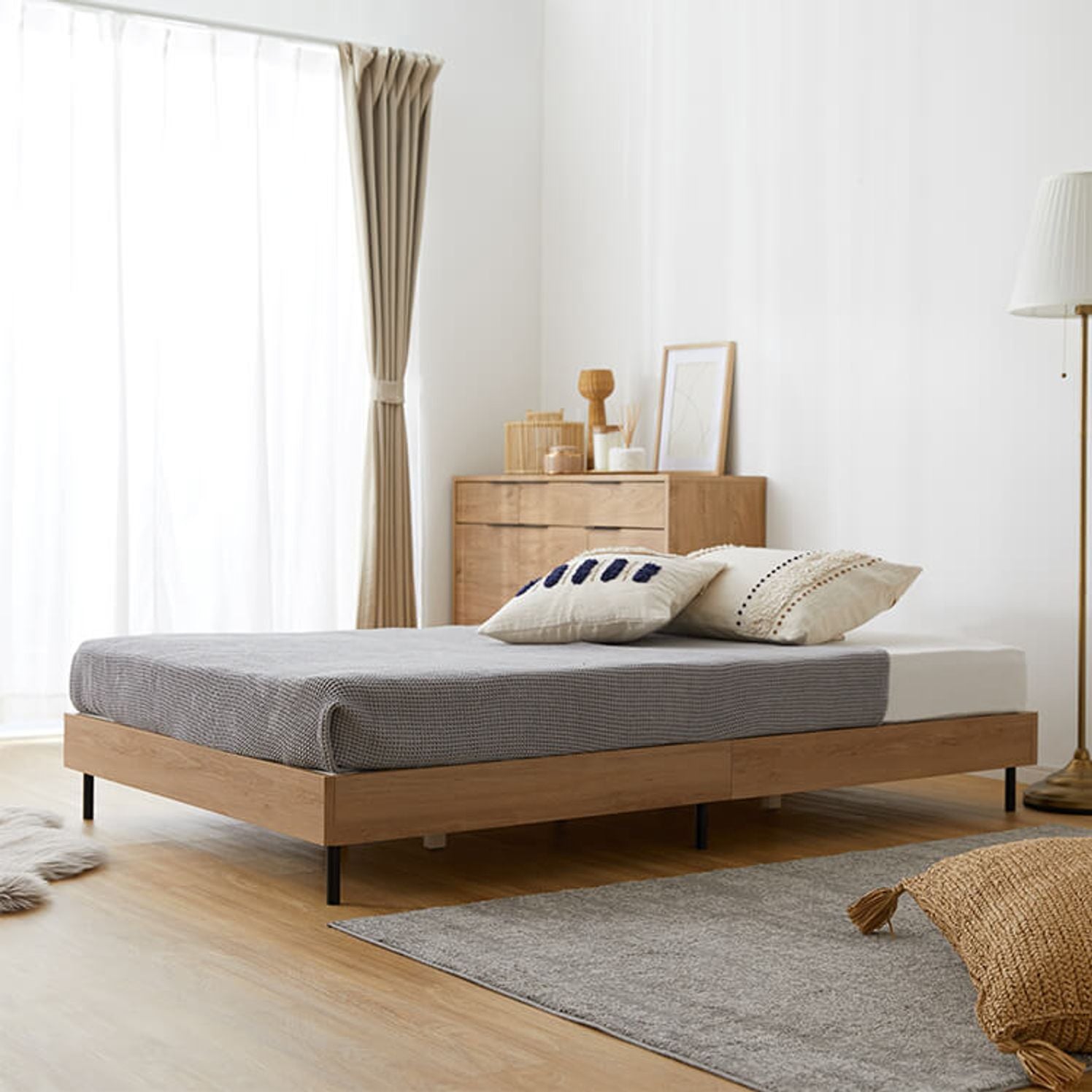 解放感のあるスマートなデザインのすのこベッドです。 ナチュラルになじむ木目柄とシンプルなスチール脚が特徴で、どんなお部屋にもあいます。ロースタイルでスタイリッシュなのでお部屋が広く見えるのも魅力です。