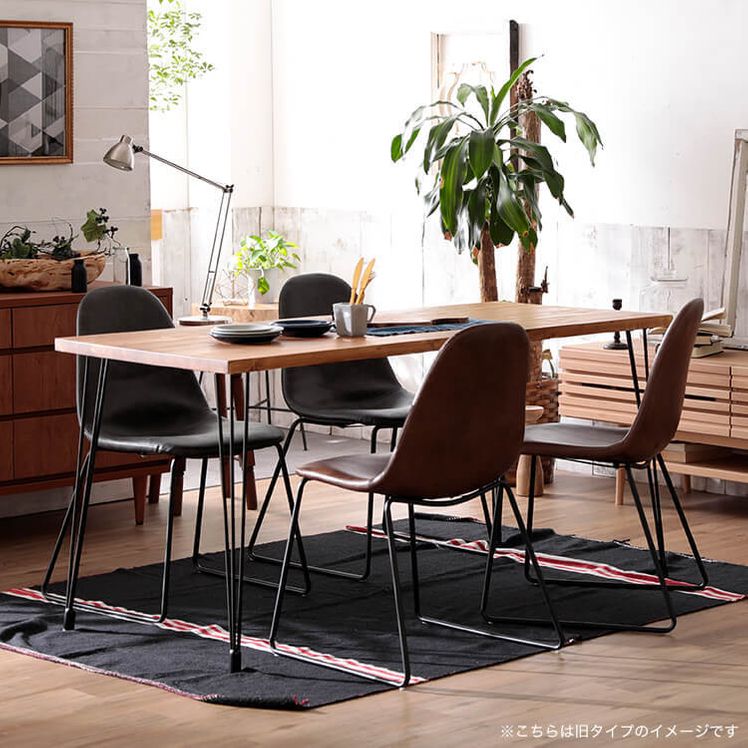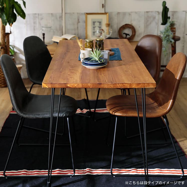 同じ物が2つとない無垢のダイニングテーブルです。160cmのワイドサイズなので、人が集まってテーブルを囲むのにちょうどいいサイズ感です。また、スタイリッシュなスチール脚が、ダイニングをさらにおしゃれな空間にします。