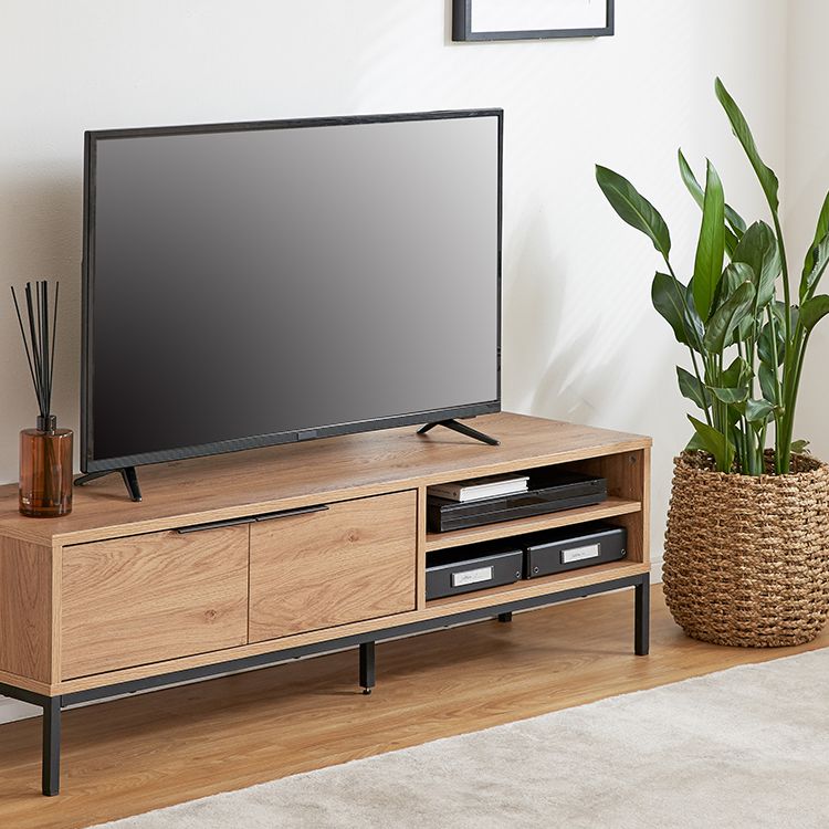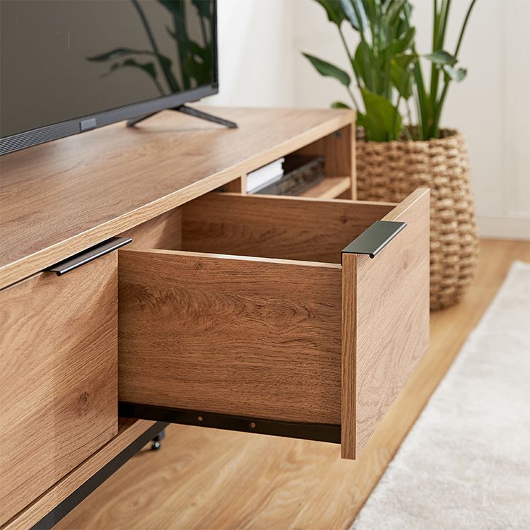 書類や小物・家電など、色々なものであふれるリビング空間。リビングで一番視線が集まるテレビスペースは、見た目をスッキリさせたいですよね。それを叶えてくれる[幅140cm]のテレビボードです!こちらは当社デザイナーが独自のこだわりをもって完成させたオリジナル商品です。どんなインテリアにも自然と馴染み、長くお使いいただけるシンプルでスマートなデザインと使い勝手の良い収納力をカタチにしました!本物ようなリアルな質感の木目調に、スチール脚の組み合わせ。置くだけでセンスのいいリビング空間が完成!節や木目の細かい所まで、まるで本物の天然木のように見た目がリアル!マットな質感と、ほんのりザラつきのある凹凸が豊かな表情を生み出します。※木目の位置には個体差があります。