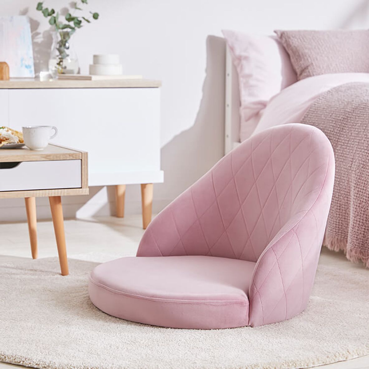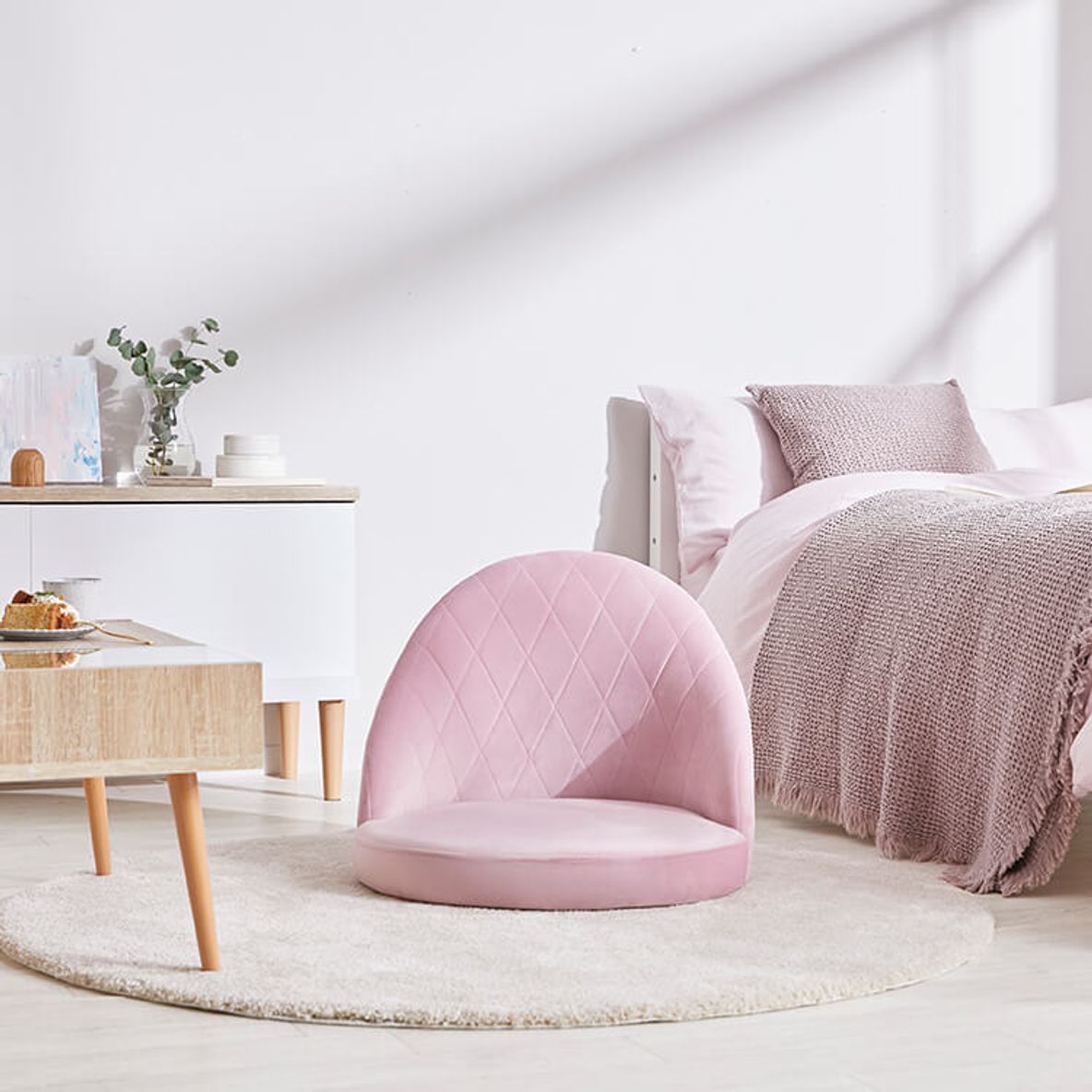 その見た目・座り心地は、座椅子というよりも『一人用ローソファ』。おしゃれなフォルムと可愛らしいカラーで、お部屋を彩ります。あなただけのくつろぎの時間をご堪能ください。「大人の女性」+「女子の可愛さ」をあわせた、エレガントでフェミニンなインテリア。可愛いものに囲まれたい、そんなあなたへ贈る大人可愛いシリーズです。おしゃれな見た目と座り心地を追求して、フォルムや素材に妥協せずに作った1人掛けのコンパクトローソファ。いつでもどこでもオシャレに可愛く、くつろぐ姿さえもドラマチックに演出。スペースの限られたワンルームなどのお部屋にもオススメ。省スペースで、くつろぎの空間を確保できます。