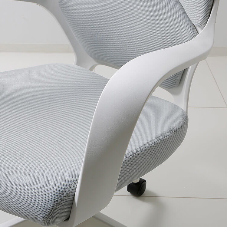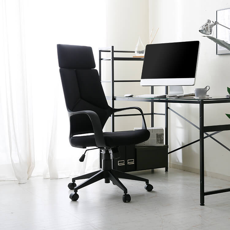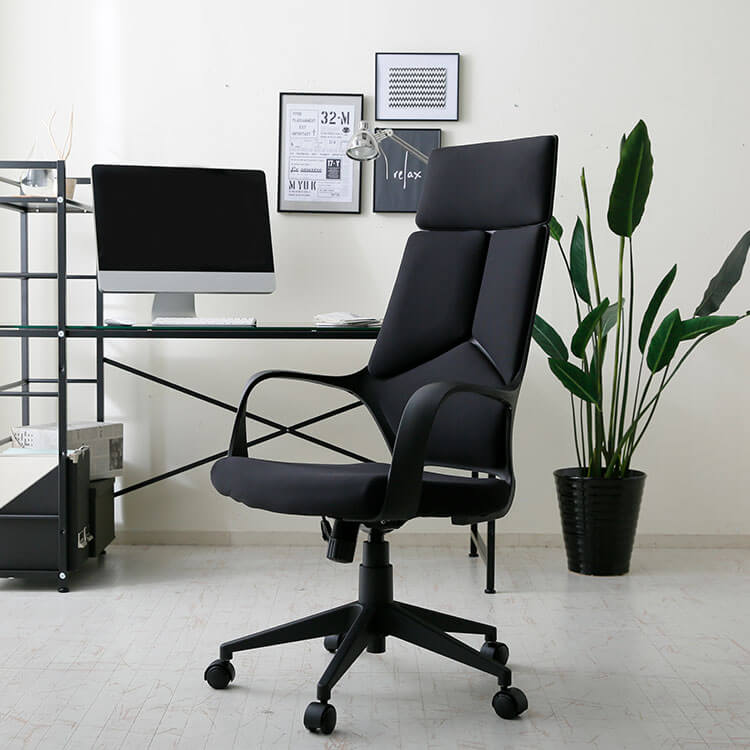 まず惹きつけられるのが、そのスマートなラインの美しさ。立体構造のハイバックに、カーブの美しいアームが特徴的なデザインオフィスチェアです。きれいなシルエットが引き立つモノトーンカラー。オフィスでも溶け込むような、モダンクールな雰囲気が魅力です。上下・左右4つに分割されたボリュームクッションが、背中をセンターポジションへ導きます。72cmの高さと、計算された立体設計のクッションで背中が包み込まれるようなフィット感を味わってください。座面は横幅50cmの大きめサイズ。長時間のデスクワークでも広々座面だからゆったりとリラックス。背もたれの背面には、通気穴が付いており、クッション内にこもりがちな湿気を軽減してくれます。