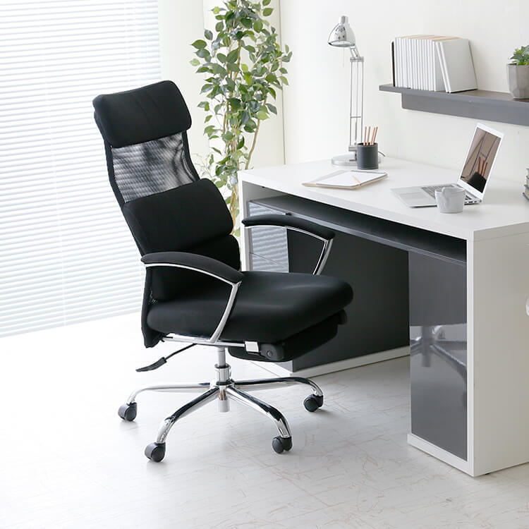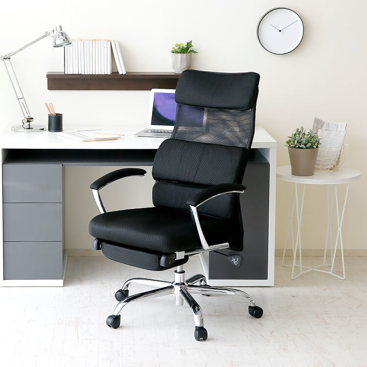 当店人気のスマートメッシュ型が、通気性はそのままにさらに進化。 仕事も休息もスマートに、より快適に過ごせるようになりました。リクライニングやフットレスト機能付きのチェアはゴツくて圧迫感のある、重たい印象のものが多いですが、当チェアは軽くてスマートなので、部屋の雰囲気を邪魔せず、より快適なデスクワークをサポートします。デスクワークに嬉しい機能が満載縮こまった足をグッと伸ばす気持ち良さをデスクワーク中でも。座るたび思わず嬉しくなってしまうチェアです。疲れやむくみにもオススメ。