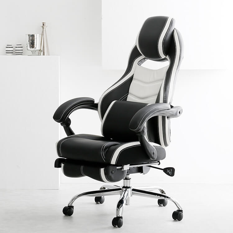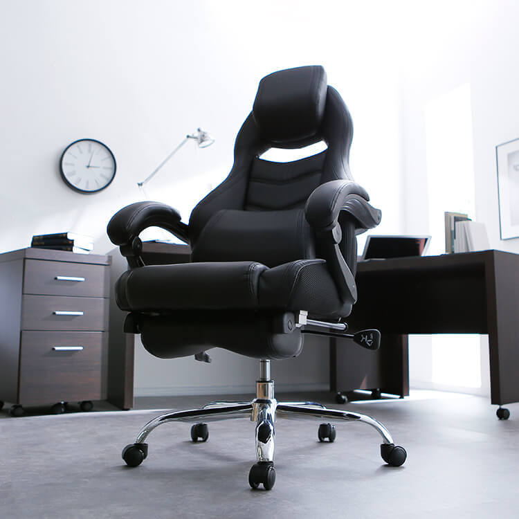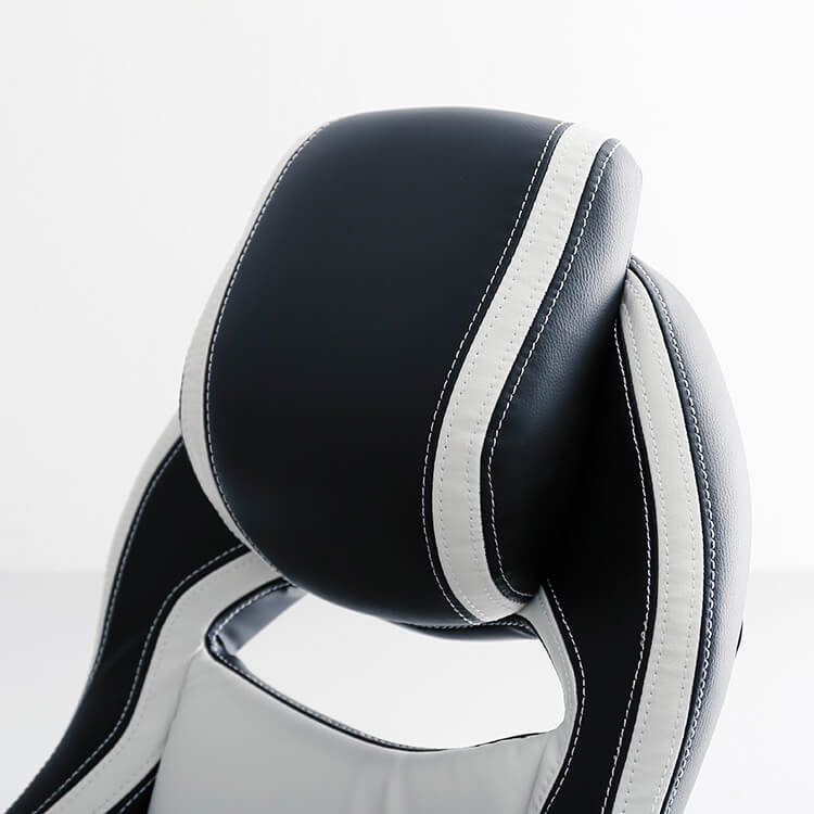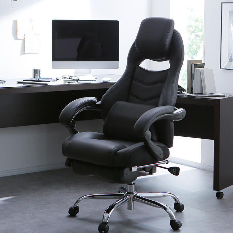 作業に注力し尽したいあなたに選ばれるために、デスクワークを加速させる機能郡を組み込みました。見た目の良さだけではなく、背中をすっぽりと包み込むフィット感を求め辿り着いたこのカタチは、長時間の作業をサポートします。車のシートのような、スタイリッシュなデザインのこのチェア。実は、レーシングカーに使用されるバケットシートをイメージして作られたものなのです。フィット感と集中力は重要な結びつきがあると考え、当チェアは、この包み込まれるようなカタチに辿り着きました。こだわりぬいて作り上げられたチェアはよりデスクワークを支えてくれると思いませんか?作業に注力し尽くしたいあなたに選ばれるために、デスクワークを加速させる機能を組み込みました。背中を優しく包み込むような形状のこのチェア。サイドのクッションでフィット感がグッとアップした背もたれになっています。サーキットを走るレーサーの身体を守るシートのように、作業をこなすあなたの身体を頼もしく支えます。