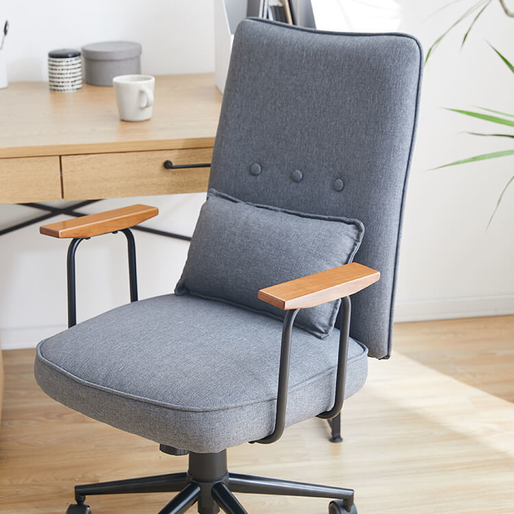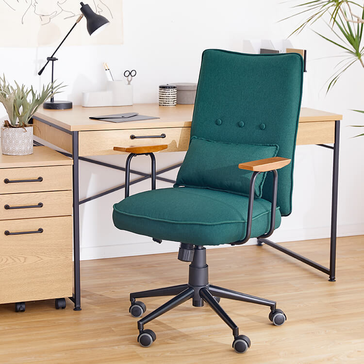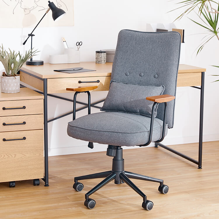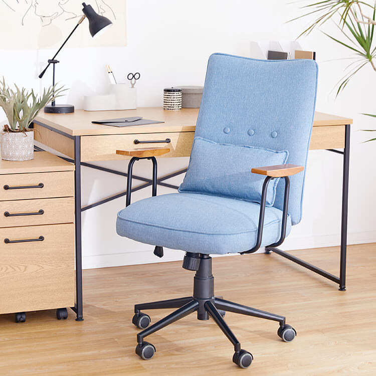 インテリアのアクセントになるカラーでお洒落なデザインのオフィスチェア。ワンルームからオフィスといった様々な空間とインテリアに馴染みあなたのデスクワークをサポートします。「デザイン性にこだわったチェアを作りたい」という思いから開発したオフィスチェア。シンプルでお洒落なデザインがこなれた雰囲気を演出します。キャンバス生地のような触り心地で、年中さらっと気持ちいい肌触り。あなたをやさしく受けとめる座り心地です。座り心地、高さ調節、キャスターなど、デスクワークで使いやすい機能を充実させました。