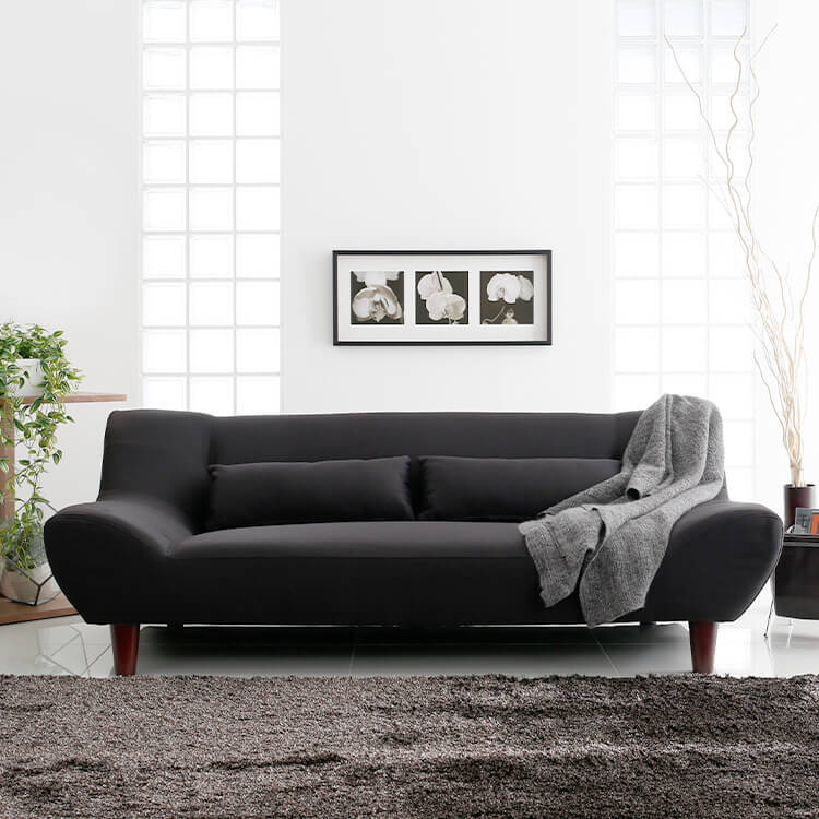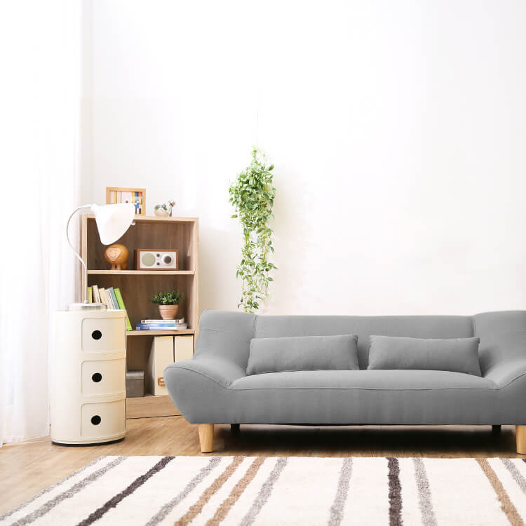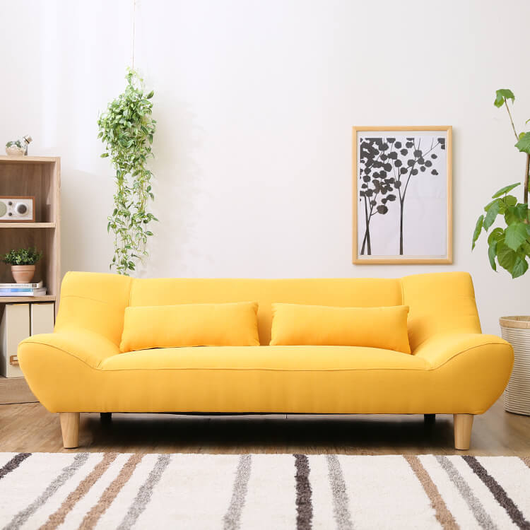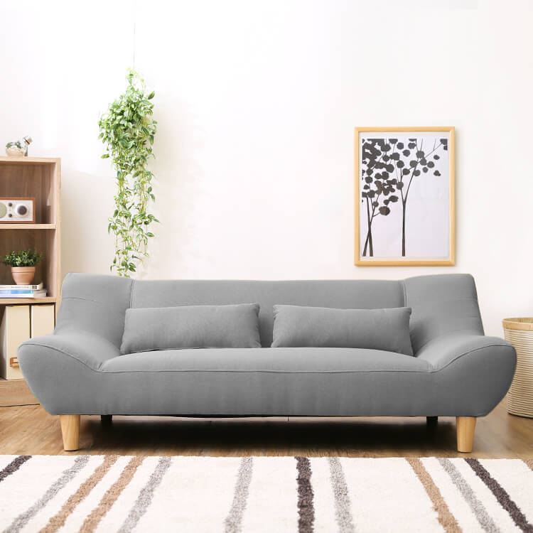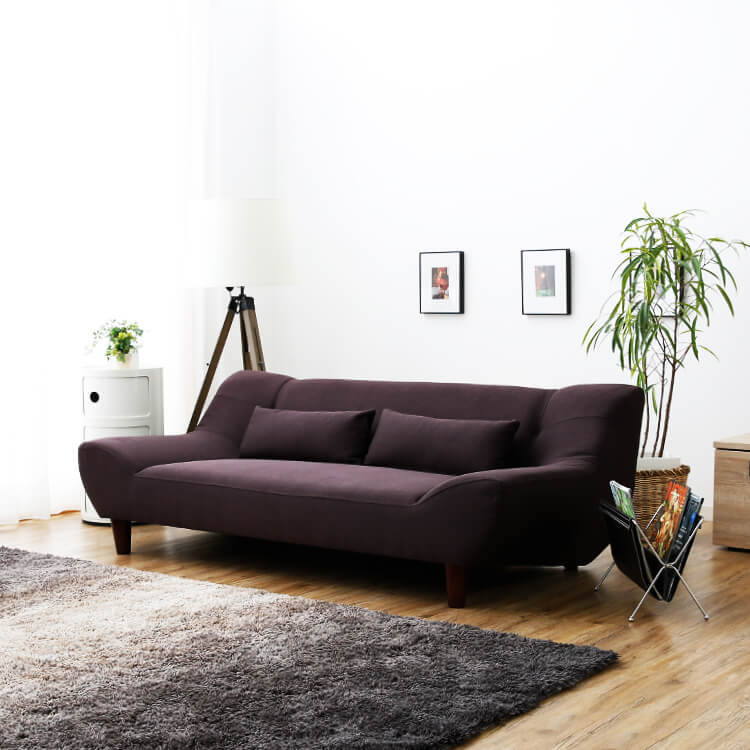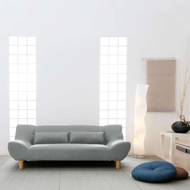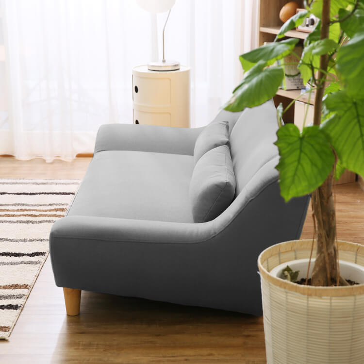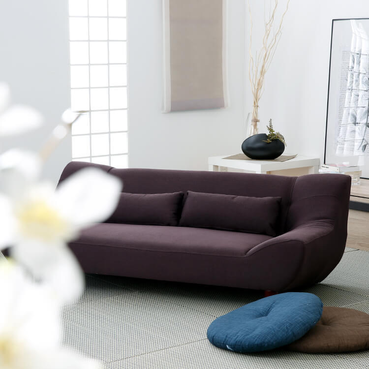 空間に余裕のある、床に近い暮らしをしたいあなたへおすすめ。緩やかな傾斜に惹き寄せられるこのソファで、低さから生まれる解放感をお楽しみください。ゆったり座れる人気の2.5人掛けサイズでも、スペースを広く見せるロータイプソファ。低い背丈と凹凸感のないフラットなデザインが空間にゆとりをもたらします。緩やかな傾斜が付いた座面は、リラックスしやすい角度を求め、座ると少し後ろに傾くよう計算。身体がソファに吸い込まれるようで、一度座ると立ち上がりたくなくなります。実は、和室にも似合う当商品このソファ。ロータイプで落ち着いた色味が、和室にも馴染みやすく、置くだけで洗練された和モダンの雰囲気に変わります。