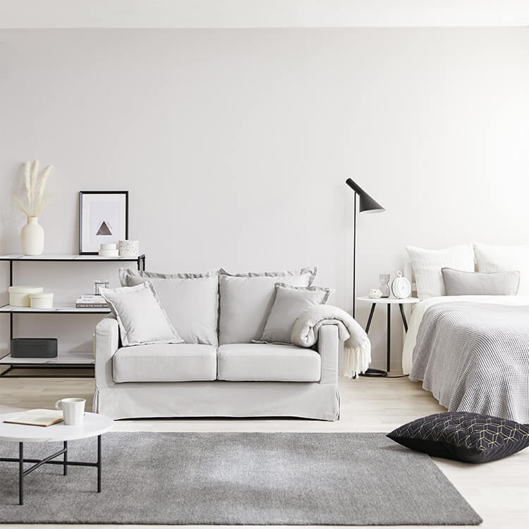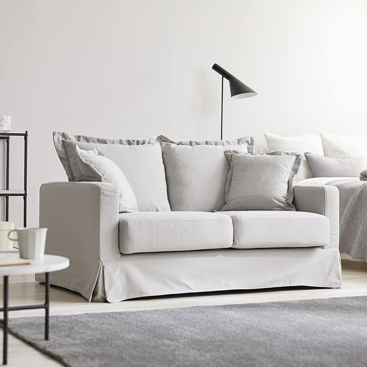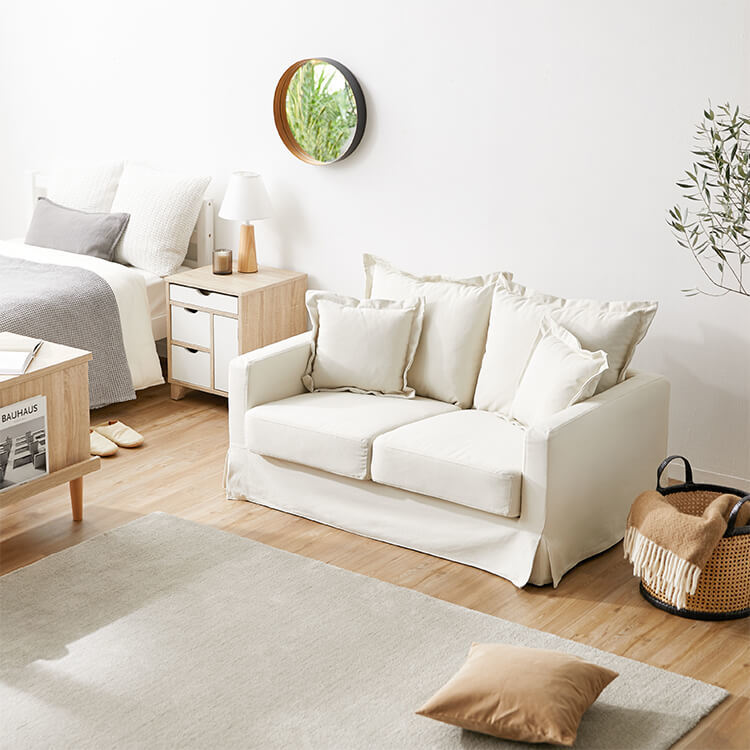 省スペースに置けるソファが欲しいけれど、コンパクトサイズは可愛い印象になりがちに…そんな悩みを解決する、大人部屋に似合うコンパクトソファができました。気品溢れるこのソファで、優雅な時間と空間をどっぷり独り占めしてください。丸みのあるカタチに、裾のスカートが優雅なソファ。ゆったり座れば、ふかふかの座面と背もたれが優しく受け止めてくれます。ワンルームでも贅沢なひとときを。どんなインテリアのお部屋にも合わせやすいように、ベーシックなカラーをご用意しました。ナチュラル、エレガント、モダンなどの印象のお部屋にもマッチします。コンパクトサイズなので、ひとり暮らしのワンルームにもおすすめです。