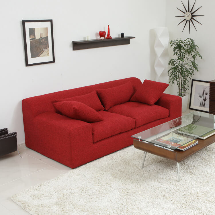 毎日の貴重なリラックスタイムをこだわりソファでゆったりと。空間を上手く使い広々と見せる人気のロータイプソファです。全身ゆったりとできる堂々とした存在感のロータイプソファ。ワンルームにも置きやすい2人掛けサイズなので、一人でも二人でも、ゆったりとした時間を心ゆくまで楽しみたい方におすすめです。床に近い場所に座る生活は、お部屋に圧迫感を感じさせず、ゆとりある奥行を生み出してくれる人気のスタイル。目線が低くなることで視線が通り、天井も高く見えるので自然とリラックスした気分を味わえます。ボリュームあるピュアウレタンとチップウレタン、上層にはシリコンフィルを使い、より底付き感のない座り心地を実現しました。さらに土台には、Sバネとゴムベルトを使用することで安定感をプラスしています。