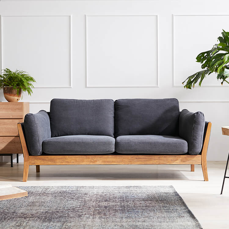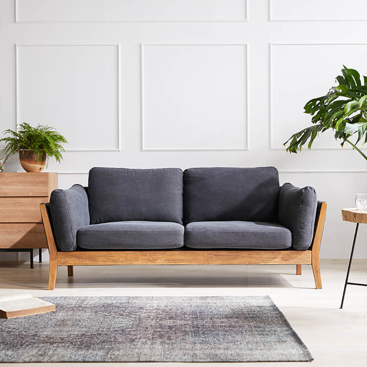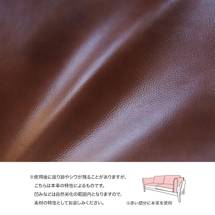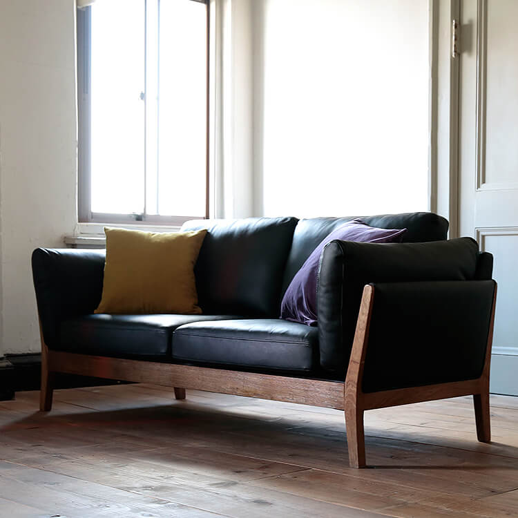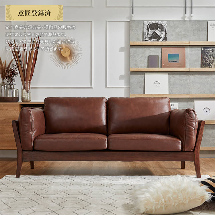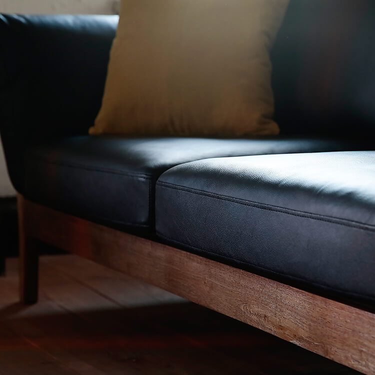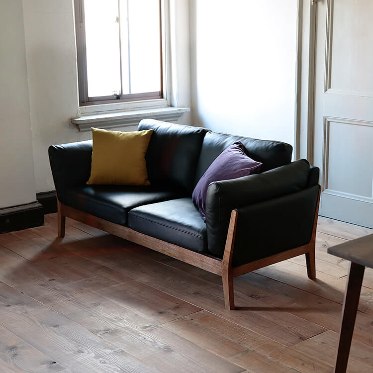 スマートなフォルムの天然木・無垢材フレームが生み出す上質ムード。美しい佇まいは、どんなテイストのお部屋にも合わせやすくインテリアの主役になるソファです。座り心地にも徹底的にこだわり完成しました。張地は高級感漂う本革と、こなれた印象のファブリック生地からお選びいただけます。柔らかな質感の本革ならではの美しさが際立つソファ。堂々としたその佇まいで、風格ある空間を演出します。本物でしか味わえない、上質な質感をお楽しみください。使い込んだようなこなれた感で、さまざまなテイストのお部屋に合わせやすく、おしゃれな空間を演出します。