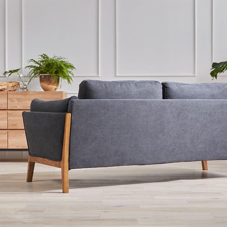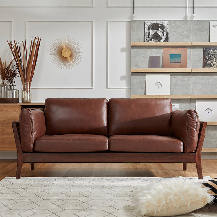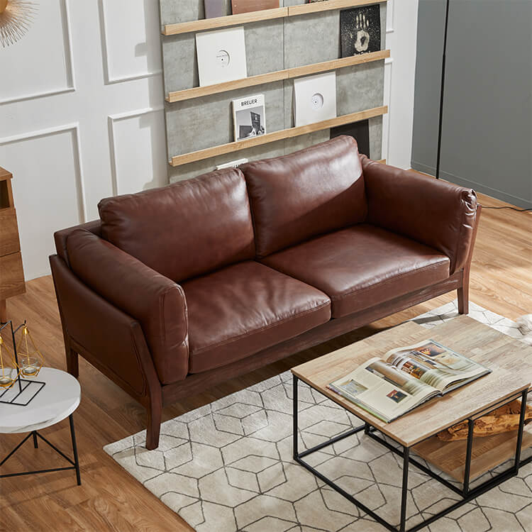 2.5人掛け 本革 ファブリック 木脚 ソファ ヴィンテージ風