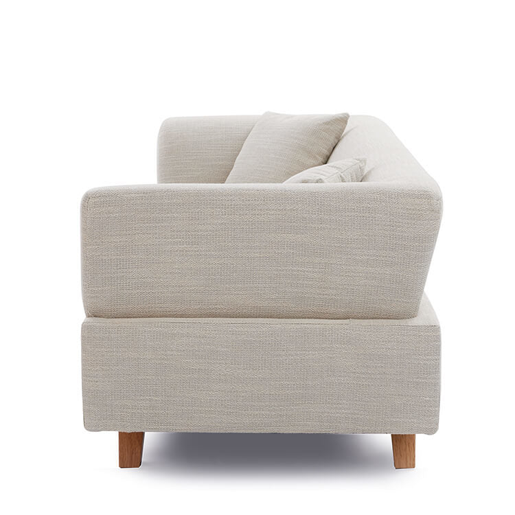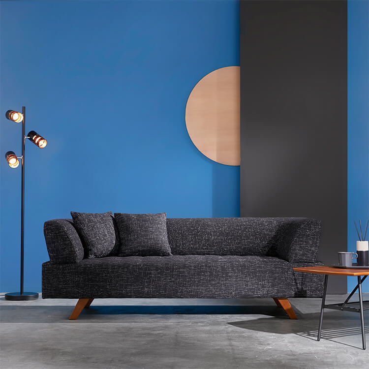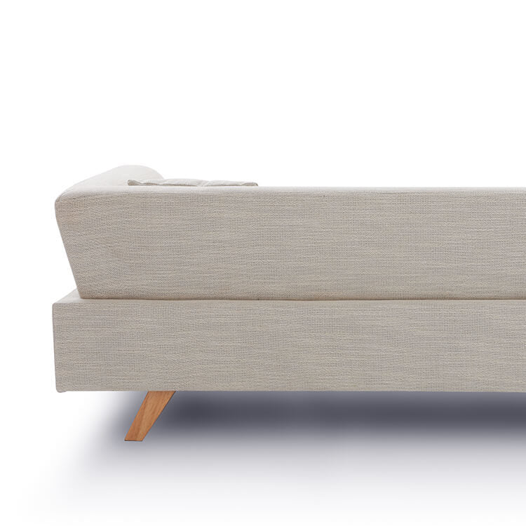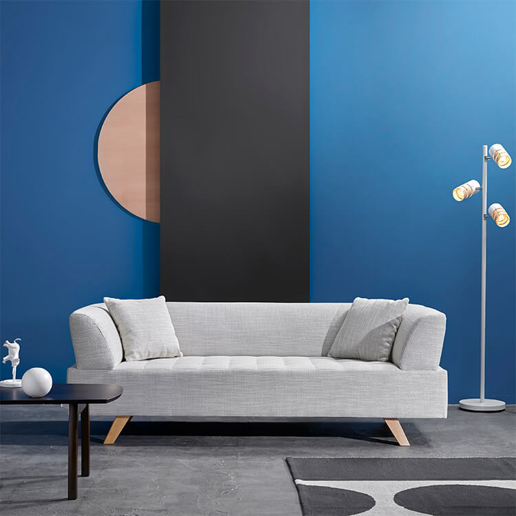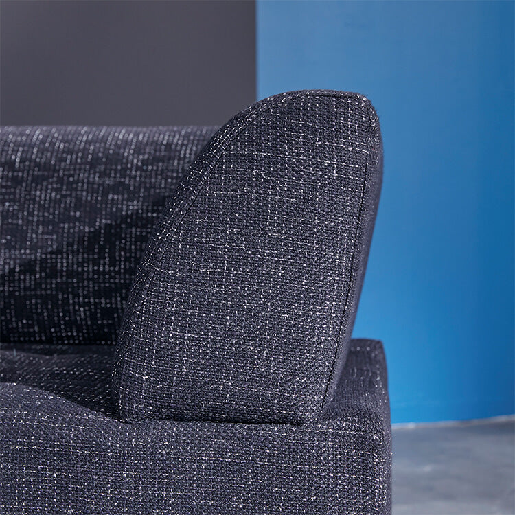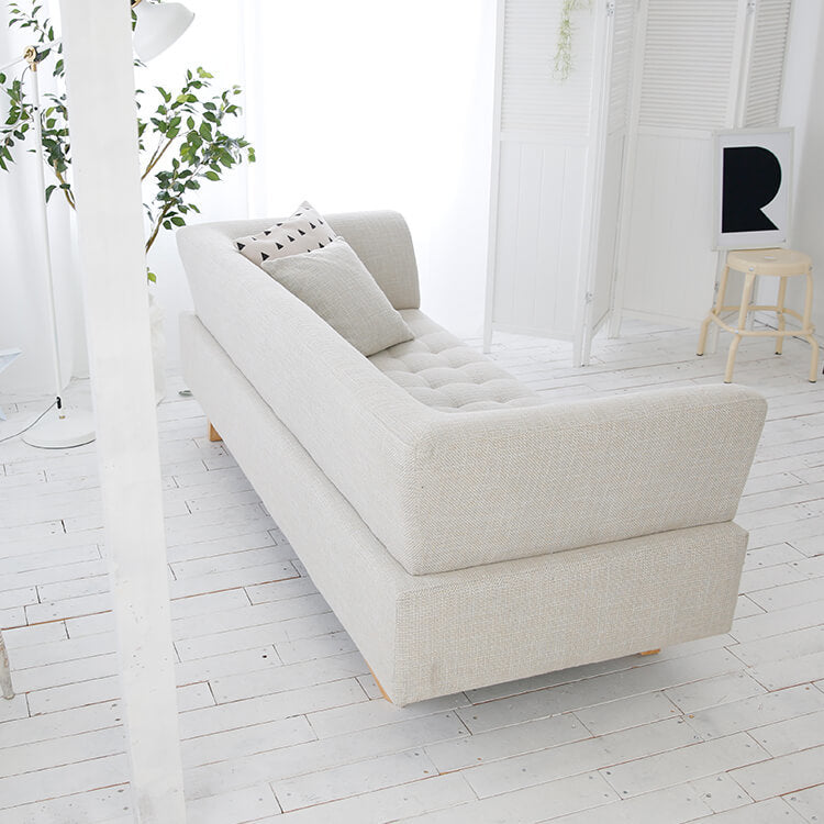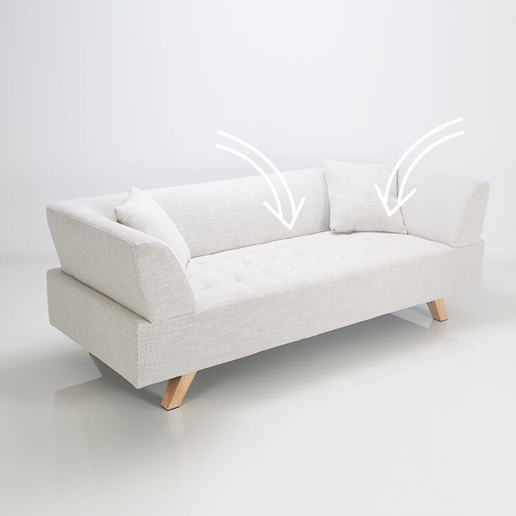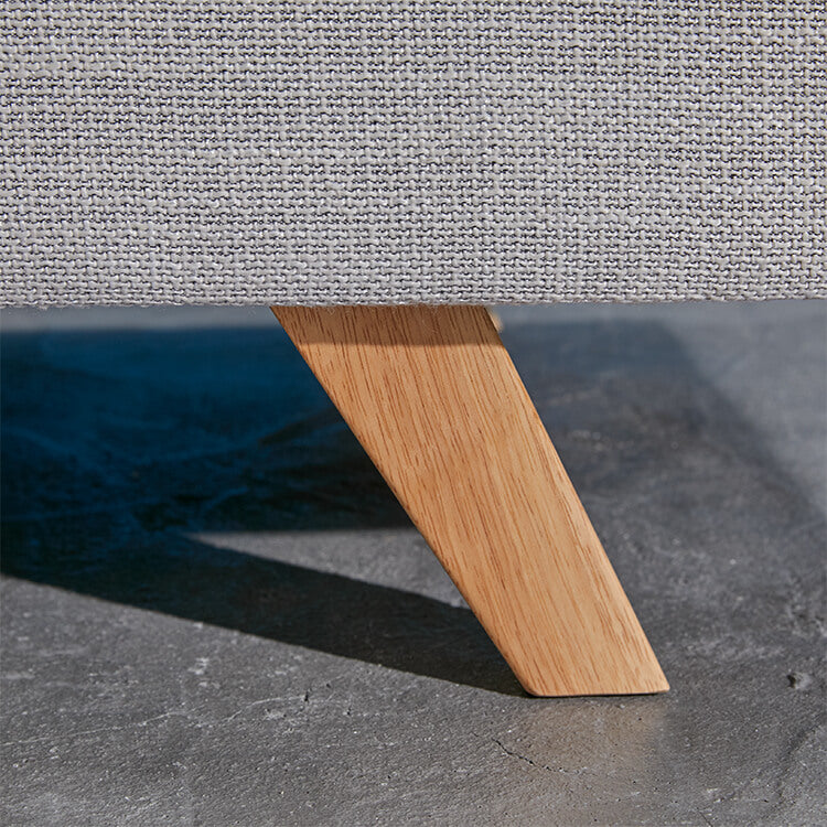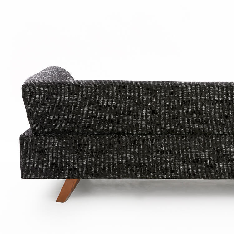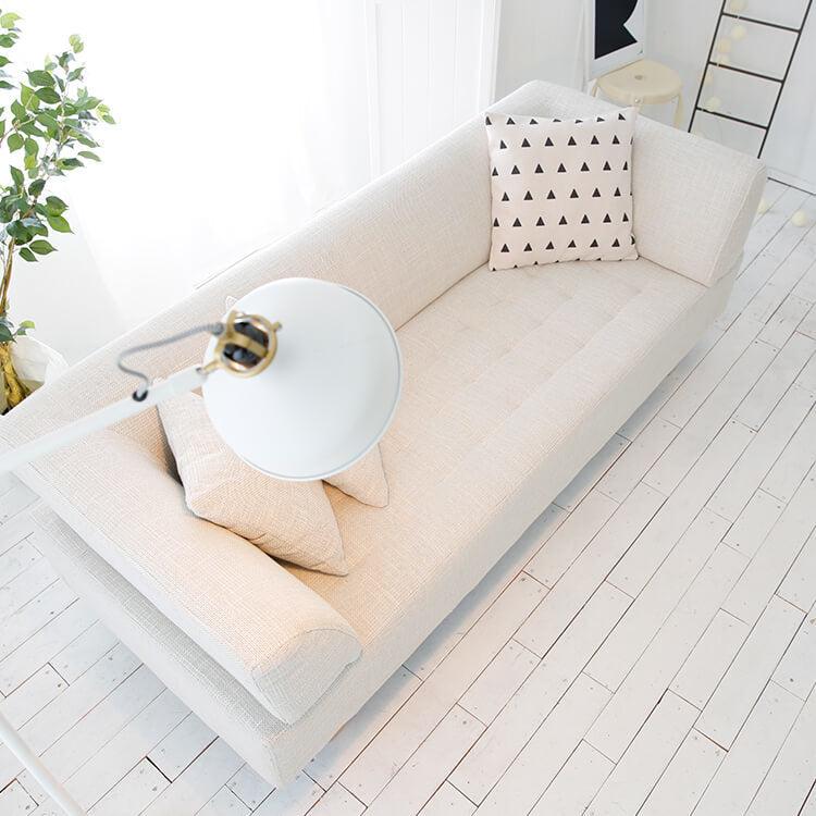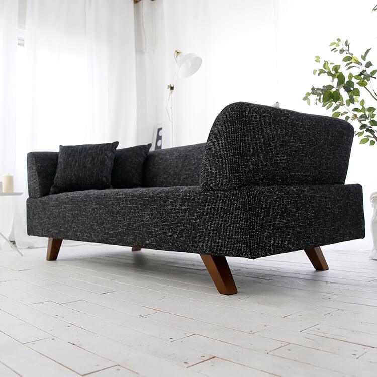 あなたの毎日に、すっと溶け込むデザインソファ。それは、美味しい料理を惹き立てる美しい器のような存在。リビングに圧迫感なく馴染んで、さりげなくセンスの良さを光らせる。そんな一台に仕上がりました。360度どこから見ても美しいシルエットは、デザイナーズソファならでは。アームから背面までのストレートなラインと、見落としがちな背面のデザインが特徴的。背もたれからアーム部分までコの字型に座面を囲む事で、不思議とコーナー部分にスポッとハマる心地よさが生まれました。このコーナーを是非体感してください。背もたれと同じ高さのアーム。本を読んだりタブレットを操作したり、ちょっと腕や頭を置くのにちょうどいい高さ設計になっています。