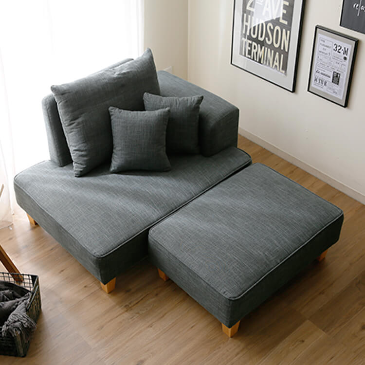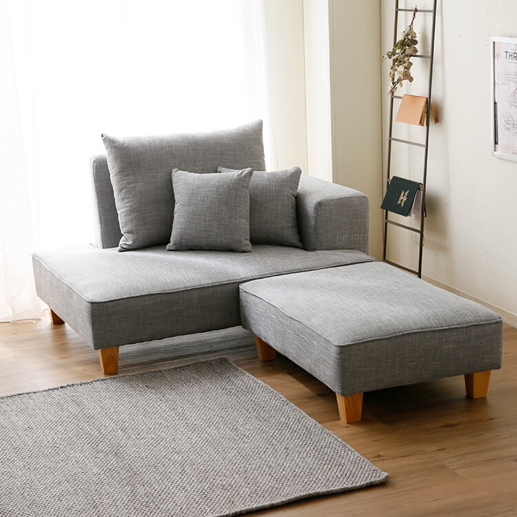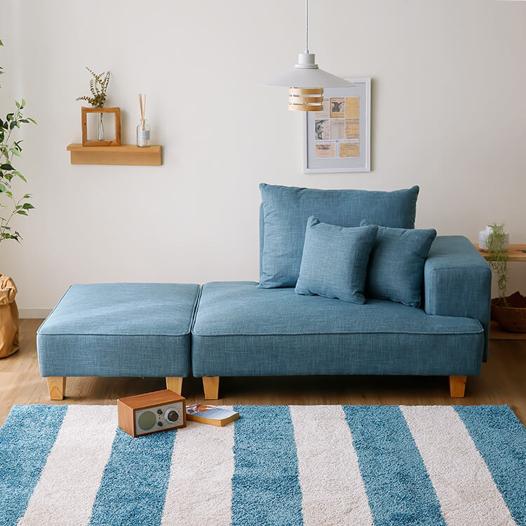 「コンパクトでも広々」はそのまま、幅広の肘掛や高めの背もたれ・座面の高さなど、細部まで“くつろぎ”を追求したこだわりのデザイン。また、洗練された見た目でお部屋に馴染みやすく、心地よい空間を演出します。ワンルームにもすっきり収まる、こだわりの横幅。さらに、肩肘アームレスとオットマンを組み合わせることで、コンパクトながらゆっくりとくつろげる広々座面を実現しました。ゆったりとした広さがあるのに、部屋に圧迫感がないのは床に近いロースタイルが、お部屋の開放感をぐんっとひろげるから。ロー座面だけど脚を長めに取ることで、スマートな外観と使いやすさを確保しました。