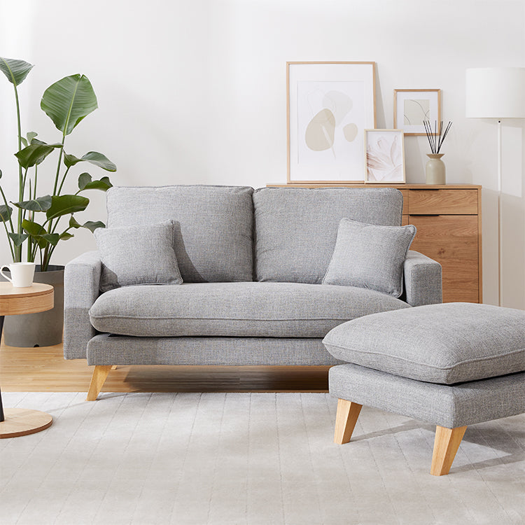 木脚がおしゃれな2人掛けカウチソファ クッション付き レイアウト自由