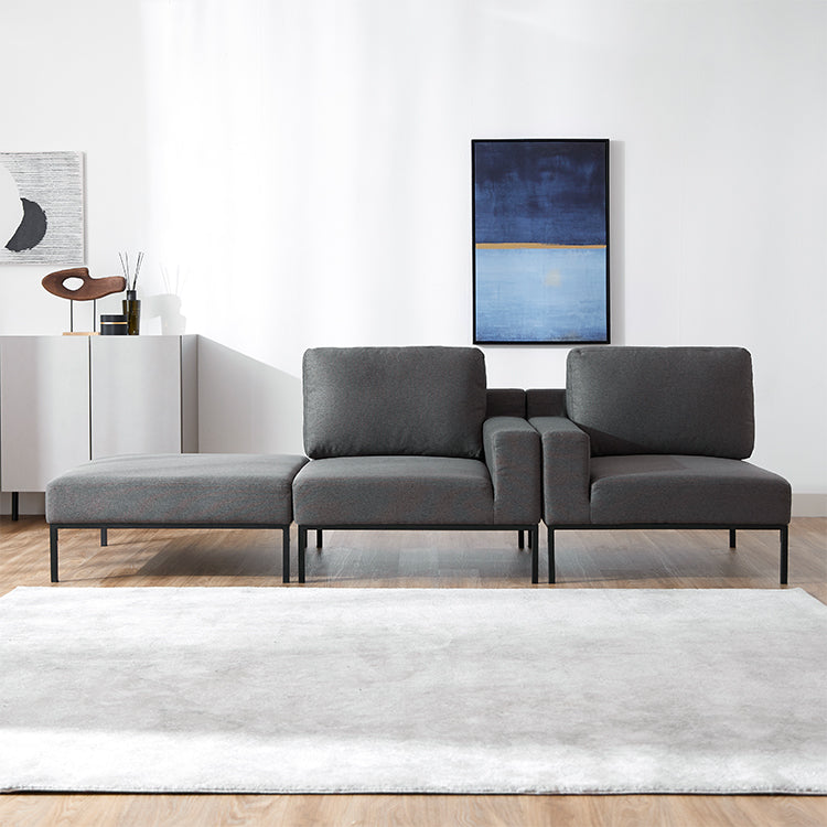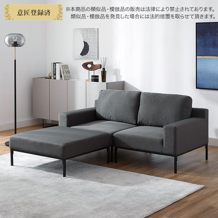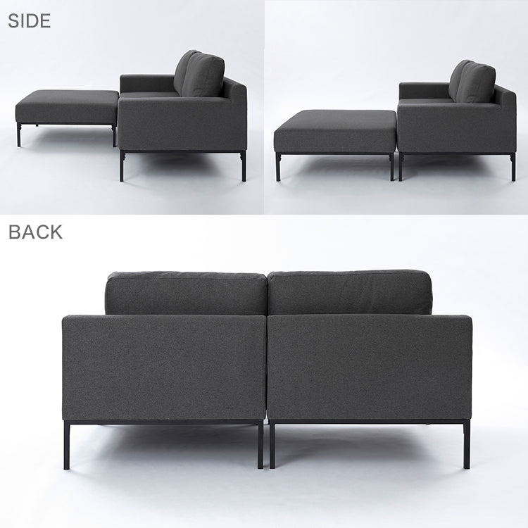 2人掛けカウチソファ スチール脚 オットマン付き レイアウト自在