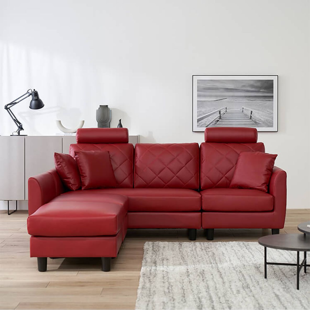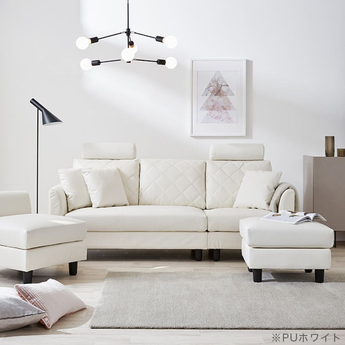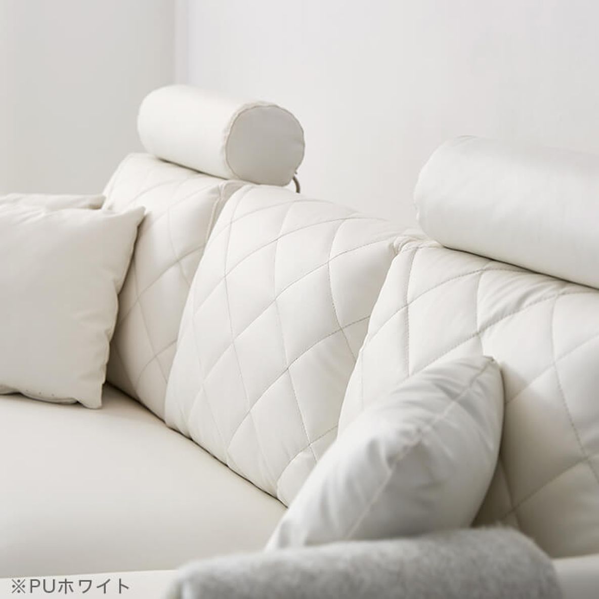 「優雅で贅沢な空間を叶える」3人掛けソファ。生活スタイルに合わせ自由に組替えができ、今欲しいレイアウトに。心地よさを追求し、お部屋に圧迫感を与えないサイズ感に仕上げました。中でもこだわったのは、座り心地をアップするための構造と、日常使いで気になるお手入れがちゃんとできること。長く愛用していただけるポイントです。お部屋の割合を大きく占めるソファだからこそ、カラーにはこだわりたい。選べる豊富なカラーバリエーションで、お部屋をさらに居心地の良い空間へとムードアップしてくれます。年中さらっと気持ちいいファブリック生地と、ダイヤモンド柄のキルトステッチが魅力なPU張地の2種類をご用意。お部屋のテイストやお好みでお選びください。