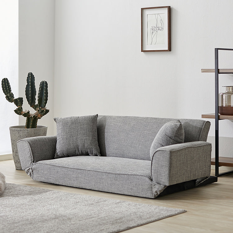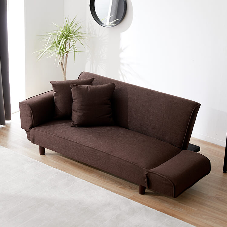 人の数だけくつろぎ方がある。このソファは様々なくつろぎ方に対応する変幻自在な2人掛けソファです。ソファで過ごす時間をもっと心地よく、より充実させたい。そんなあなたにオススメする変形自在なソファ。背面に14段階、両肘置きに6段階のギアを搭載。好きな角度、お好みのスタイルでくつろげます。右肘・左肘・背もたれの計3箇所にリクライニングギアを付けました。肘置きは6段階、背もたれは14段階のリクライニングができ、シーンに合わせて細かな変形が可能です。