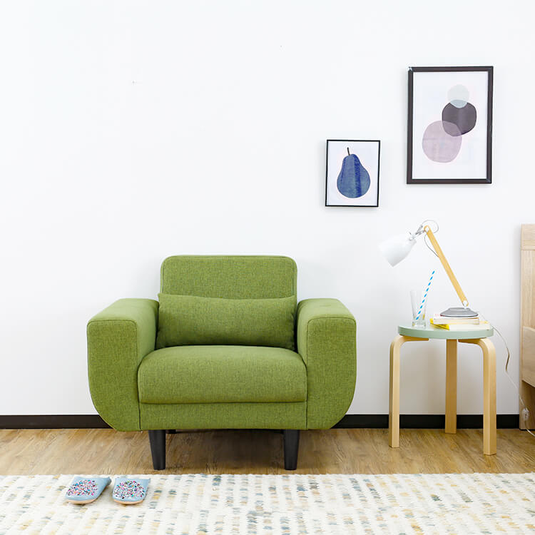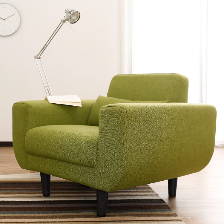魅力的なインテリアを演出するのに、おしゃれなソファはやっぱり重要。毎日をもっと心地よく、そして部屋全体を活き活きと彩ってくれるスタイリッシュソファが出来ました。ちょっぴり広めの座面が特徴の1.5人掛け。一般的な1人掛けよりも余裕のあるサイズで、ワンルームはもちろん、ファミリーからオフィスまで使い勝手の良い幅です。目立ち過ぎずにお部屋をおしゃれにしてくれて、リビングにもワンルームにも置きやすいスマートなデザインは、休日に友達を招きたくなるような魅力的なお部屋を演出します。「自分たちの作った良質なソファで、幸せな時間を過ごしてもらいたい。」職人たちがプライドを持って、ひとつひとつ心を込めて作り上げたこのソファ。商品全体に、作り手の情熱が結集しています。