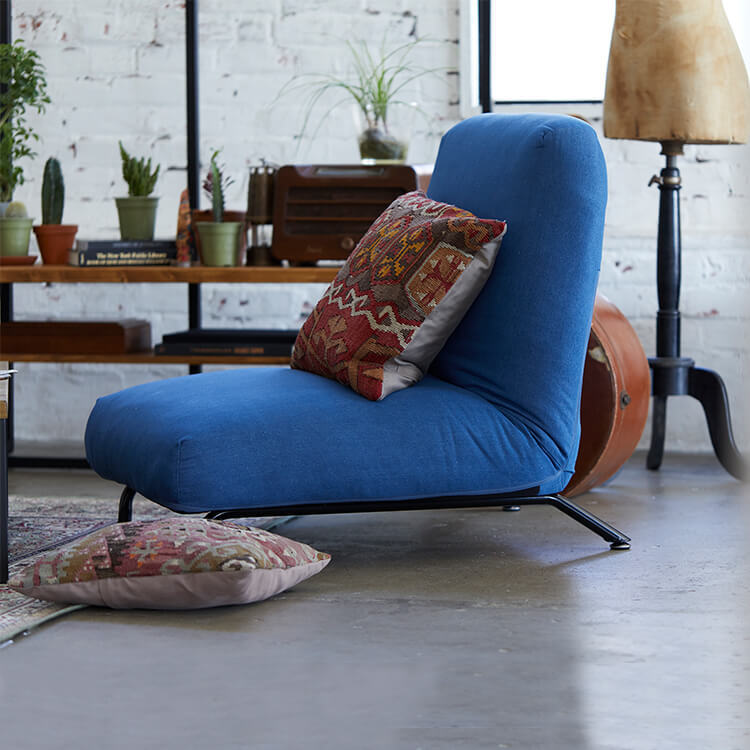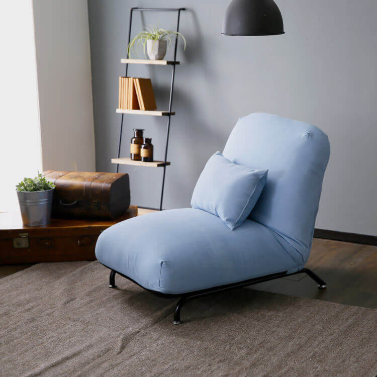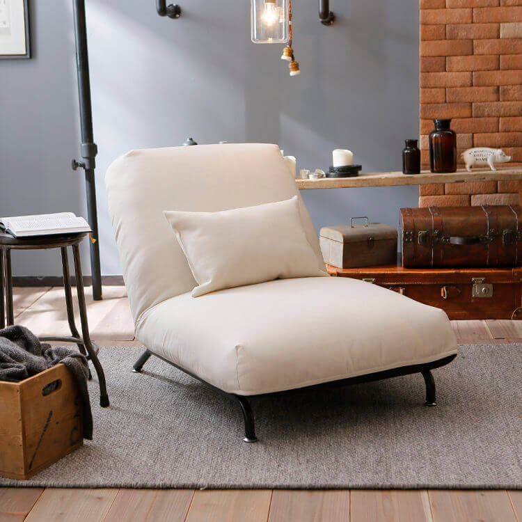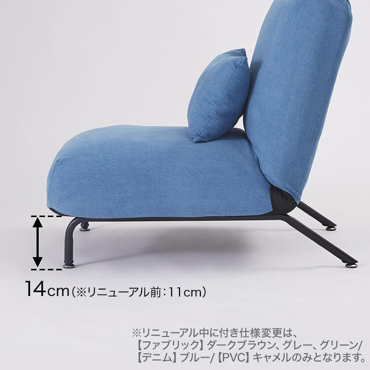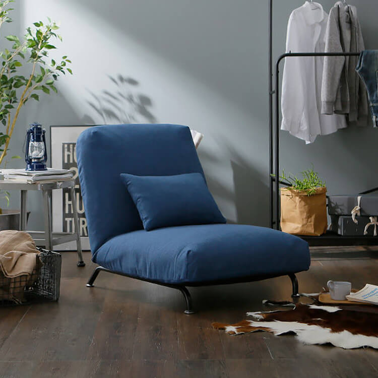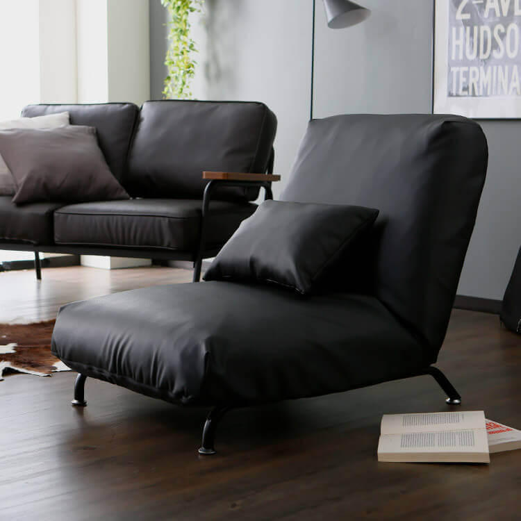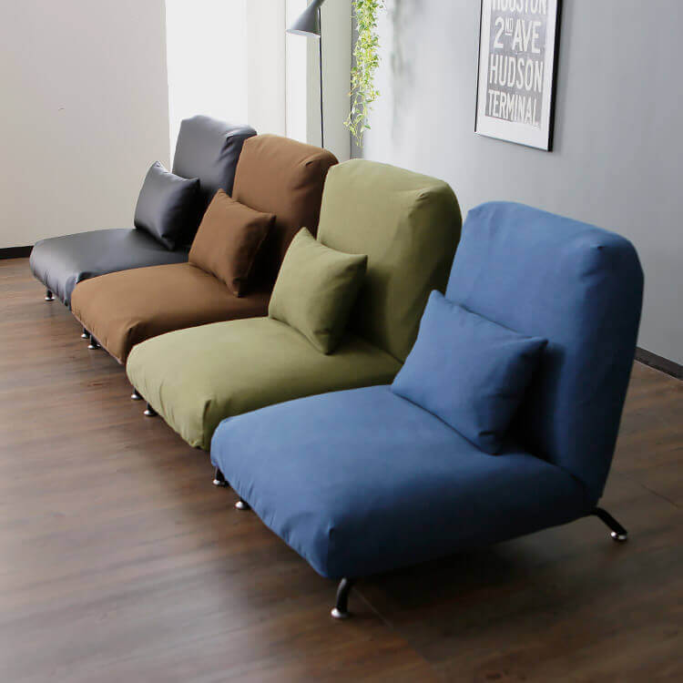 これは、座椅子?ソファ?そんな概念には捉われない、新しい定番を提案する1人掛けサイズのデザインソファ。お部屋に新しい雰囲気を取り込みたい方におすすめです。1人なのに贅沢なたっぷりとしたサイズ感、シャープなスチール脚とファブリックの異素材を組合わせたクールなデザインが、くつろぎすらもカッコよく演出します。スタイリッシュなだけでなく、リラックスだってお手のもの。たっぷり詰め込んだウレタンとポリエステル綿が、優しく身体にフィットします。計算された適度な高さ。座るだけでなく、立ち上がりやすさまで考えた上質設計です。
