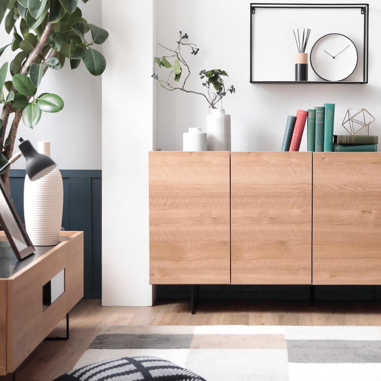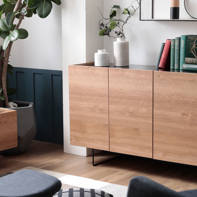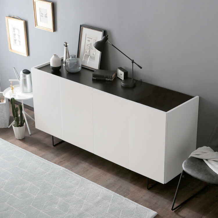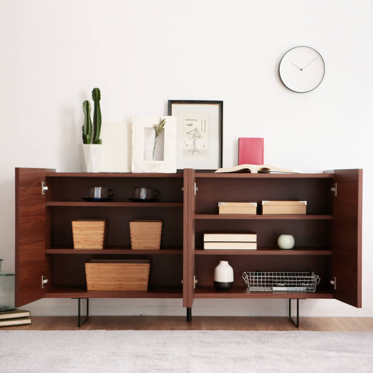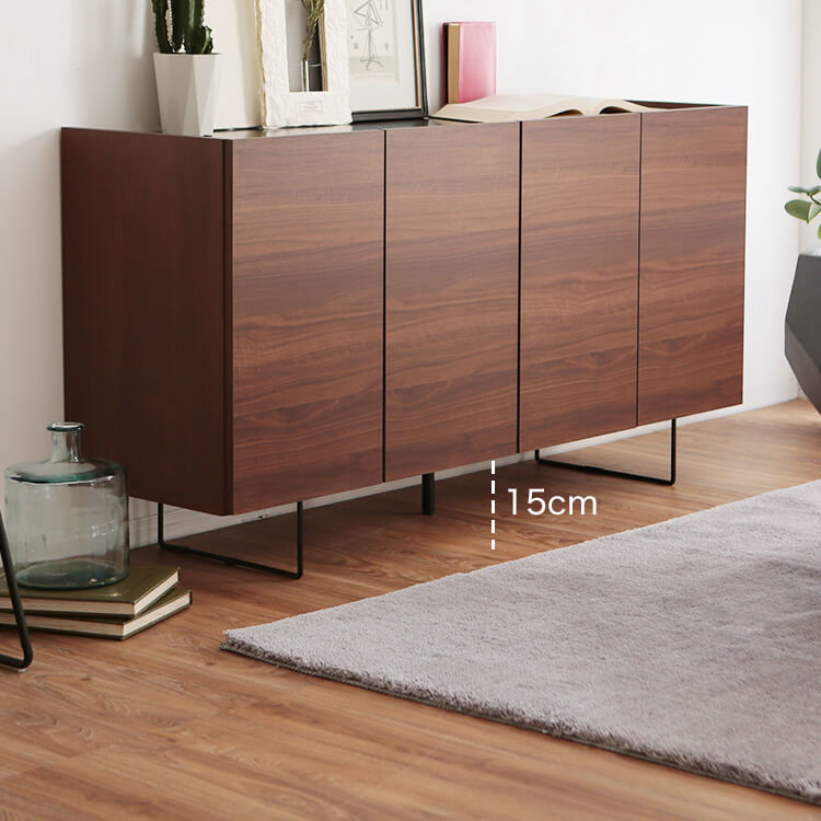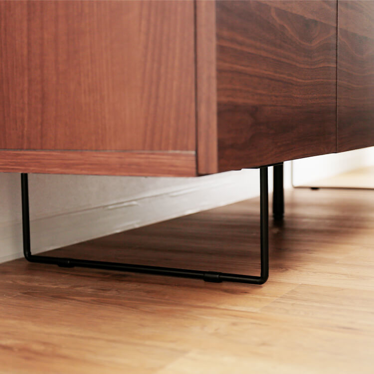 シンプル×モダンなデザインで、インテリアに自然と溶け込みます。見た目の良さに加えて、使いやすさ・収納・配線まで考えられた「魅せる」サイドボードが登場しました。どんなお部屋にも馴染み、シンプルながらも遊びを盛り込んだ仕上がり。スマートな形が豊富な表情を作り出し、水平方向に伸びる直線が空間に広がりを与えてくれます。熟練の家具職人が一つ一つ丁寧に真心込めて作り上げた当商品。安価な輸入品とは違い、シンプルなデザインの中で精巧な美しさが光ります。高級感溢れるテレビ台が生み出すゆとりの空間をご堪能ください。脚元に空間があることで、お部屋全体に余裕を作りすっきりとした印象に。マットな質感のスチール素材とスマートな形がこだわりです。脚の高さが15cmと高めなので、お掃除もラクラクです。