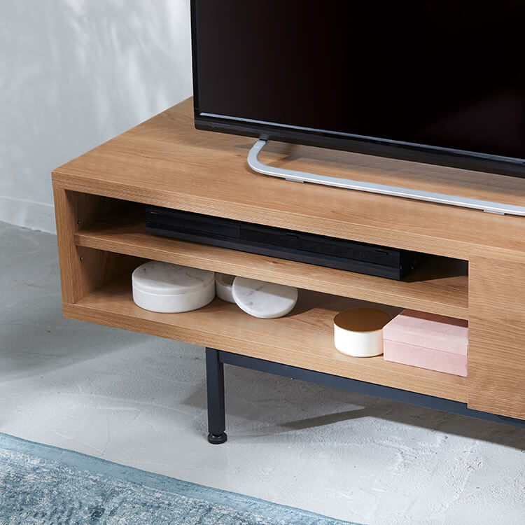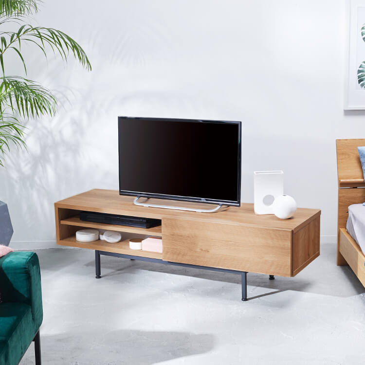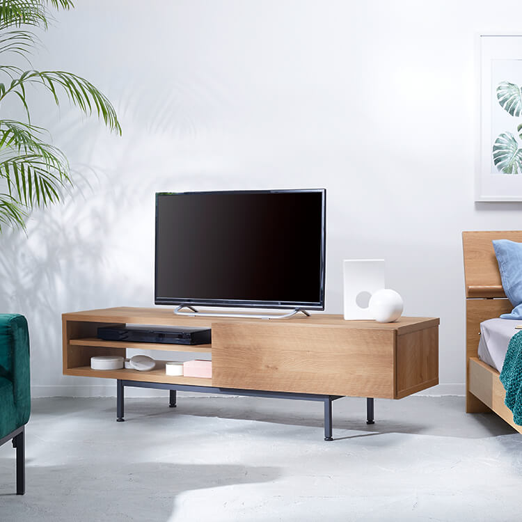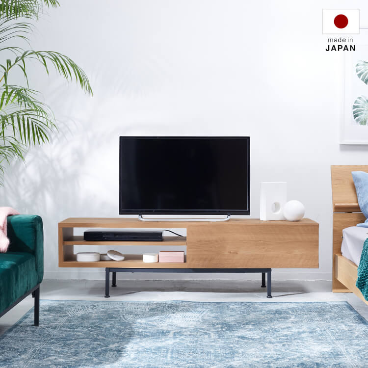 ワンルームのお部屋にもスッと溶け込む、洗練された美しさ。木目調が映える、シンプルな造形と機能美を備えた人気の国産テレビボードに【幅140cm】が登場しました。美しい木目柄を遮る取っ手を付けないことで、スタイルを選ばないシンプルなカタチに。インテリア性の高い美しいテレビ台に仕上がりました。熟練の家具職人が一つ一つ丁寧に真心こめて作り上げました。安価な輸入品とは違い、日本製ならではの匠のプライドと情熱を詰め込んだ完成度の高い一品です。天板は各テレビサイズに対応。スピーカー等もゆったりと置くことができる広々としたサイズ感です。※配置テレビの重さは異なりますので、サイズ・重量を必ずお確かめください。