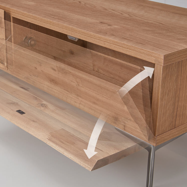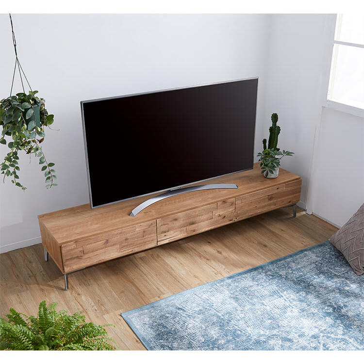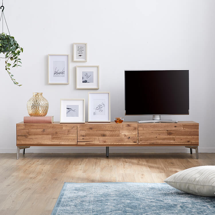 シンプルだけど人とは違う、随所にこだわりが見えるモノを。人気の高いインダストリアルデザインのスチール脚を組み合わせた異素材MIXの国産TVボードです。本体の高さは35cmと、通常のTVボードと比較しても低めの作りになっています。空間を圧迫しないので、お部屋をスッキリと見せてくれます。熟練の家具職人が一つ一つ丁寧に真心こめて作り上げました。安価な輸入品とは違い、日本製ならではの匠のプライドと情熱を詰め込んだ完成度の高い一品です。お部屋に合わせやすく、人とは違うおしゃれなモノを。選べる2つのタイプに異素材の脚を組み合わせることで、こなれた雰囲気に仕上がりました。置くだけでセンスの良い空間が完成します。