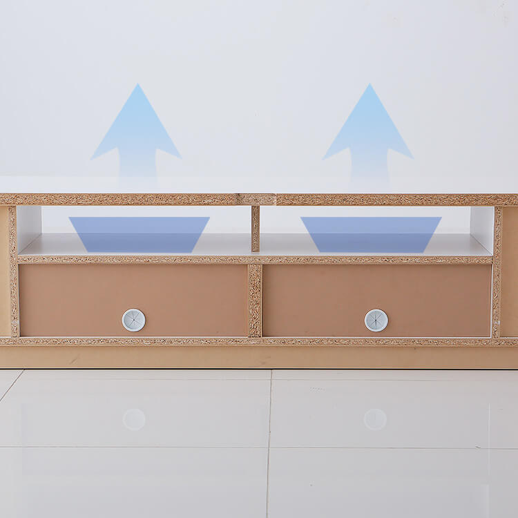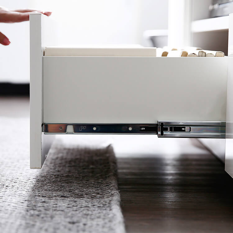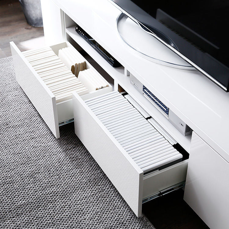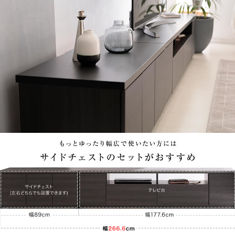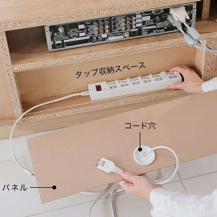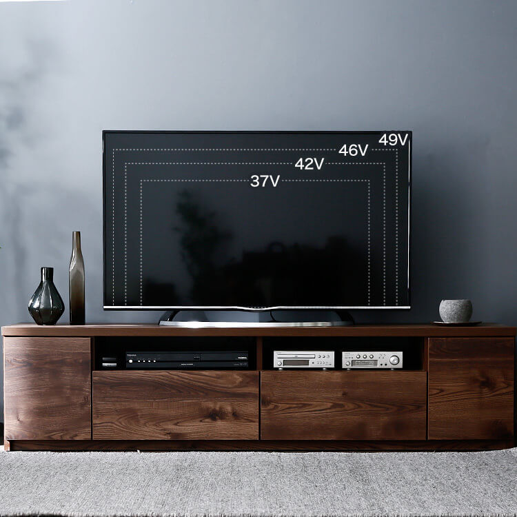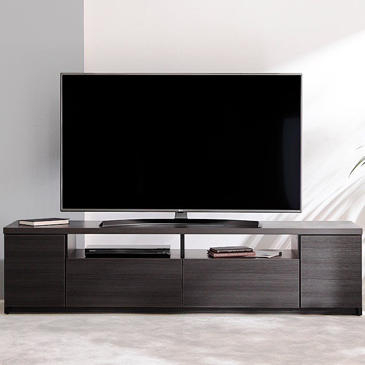 無駄をそぎ落としたシンプルでフラットなデザインは、お部屋にスッと溶け込む美しさ。いろんなテイストのお部屋にしっくり馴染み、落ち着いたリビングのムードを演出します。使いやすさ、デザイン性にこだわった、日本製のテレビボードです。本物の木のような木目の「木目調タイプ」と、ツヤ感が美しい「光沢タイプ」の選べる2つのタイプをご用意しました。木目調タイプには繊細なエンボス加工が施されており、触れても本物の木のような凹凸感とサラリとした手触りを感じることができます。高さ12センチのAV機器スペースは、レコーダーやゲーム機など、横に2台並べて使えるからとても便利。真ん中2つの引き出しは、DVDや本も大量に収納できます。リビングにある小物類も、引き出しに収納してしまえば閉めるだけで、お部屋がサッと片付きます。