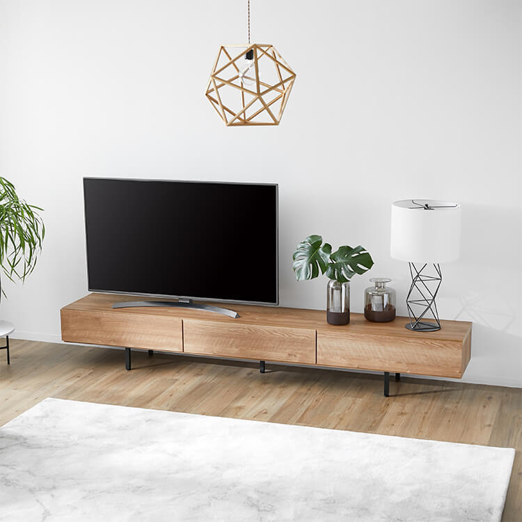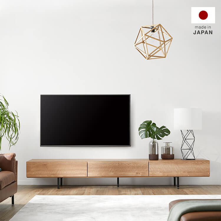 細脚にすることで、より引き立つすっきりとした見た目。高い技術を持つ職人だからこそ、作ることが可能なシンプルデザインです。こだわりのTVボードをあなたのお部屋にも。こちらは当社人気のTVボードのワイドサイズ。よりワイドなテレビサイズにも対応可能で、収納スペースもさらに充実。470余年にわたる家具づくりの歴史を持つ「家具の街・大川」。熟練の家具職人が一つ一つ丁寧に真心込めて作り上げました。日本製ならではの匠のプライドと情熱を詰め込んだ完成度の高い一品です。「安心、安全、環境」という点に配慮した国産家具を生産するメーカーや取り扱い事業者を、国産家具表示ができる事業者として認定するマークを取得しています。