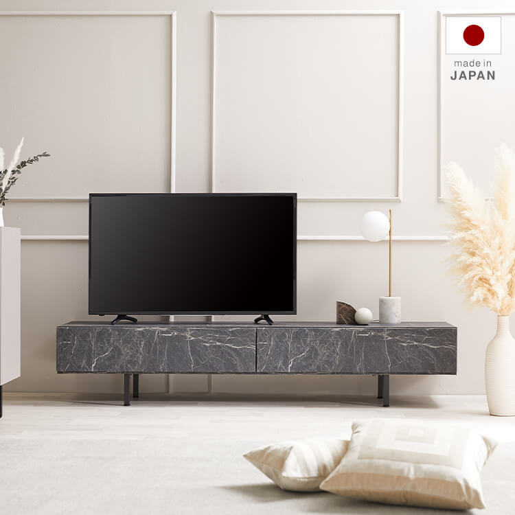 置くだけでお部屋の雰囲気を格上げしてくれる日本製テレビボード。「大理石柄」や「モルタル柄」のお洒落な柄を纏ったデザインとこだわりの機能性で、長く使っていただける逸品です。こちらの商品は、当社デザイナーが独自のこだわりを持って完成させたオリジナル商品。シンプルで洗練されたデザインで使い勝手の良いテレビボードをカタチにしました。