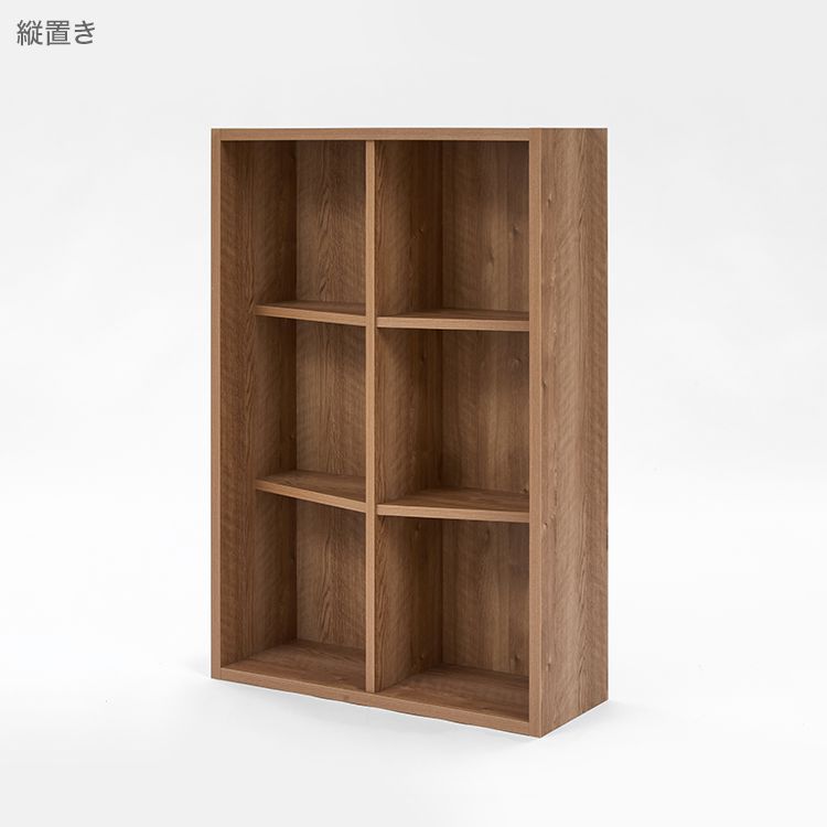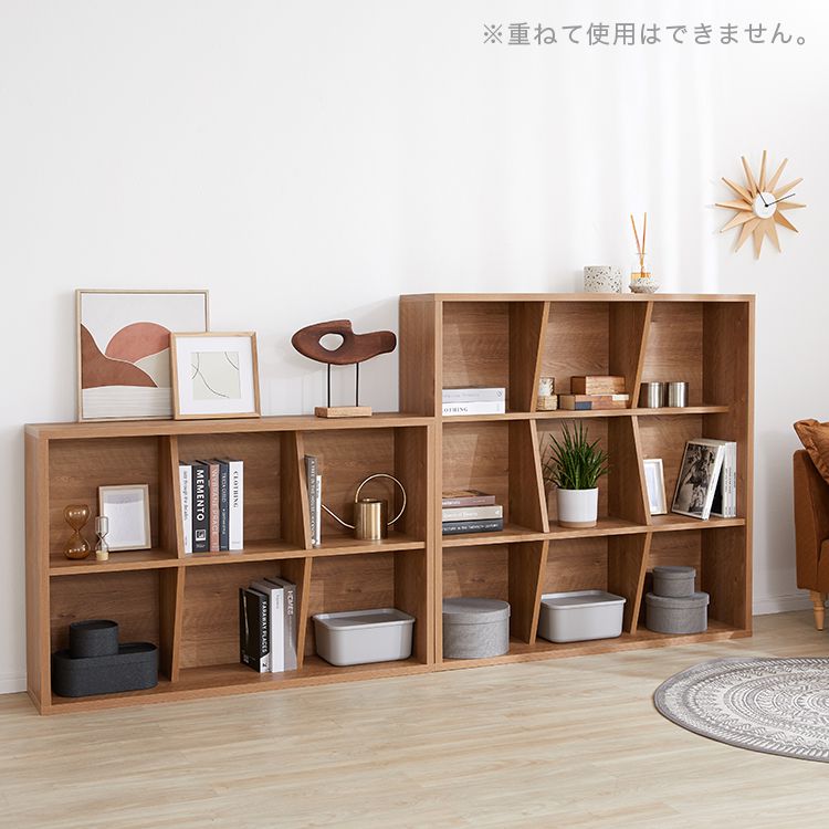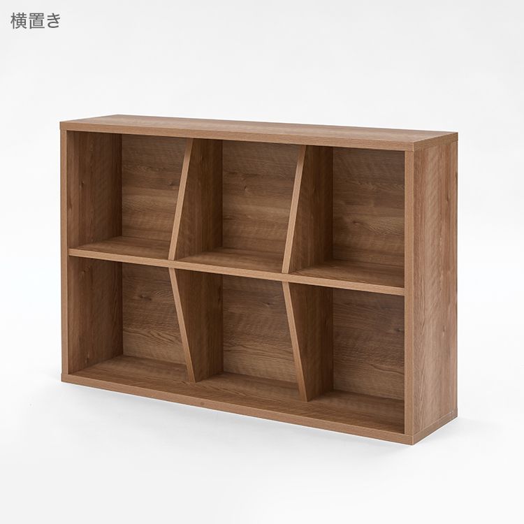 「シンプルすぎる棚では物足りない……。」一味違う収納棚をお探しの方にオススメ!縦横自由に置ける個性的なデザイン収納棚。スタイリッシュで個性的な、奥行に変化をつけたデザイン。インテリアの主役になりお部屋をまるごとセンスアップしてくれます。横置きにしてロースタイルに。縦置きにしてハイスタイルに。収納する物に合わせて上下左右自由に回転して使えるので、自分好みのカスタマイズが楽しめます!木のぬくもりを表現した、シャビーナチュラルの木目調。ナチュラルで柔らかい雰囲気がお部屋にスッと馴染みます。