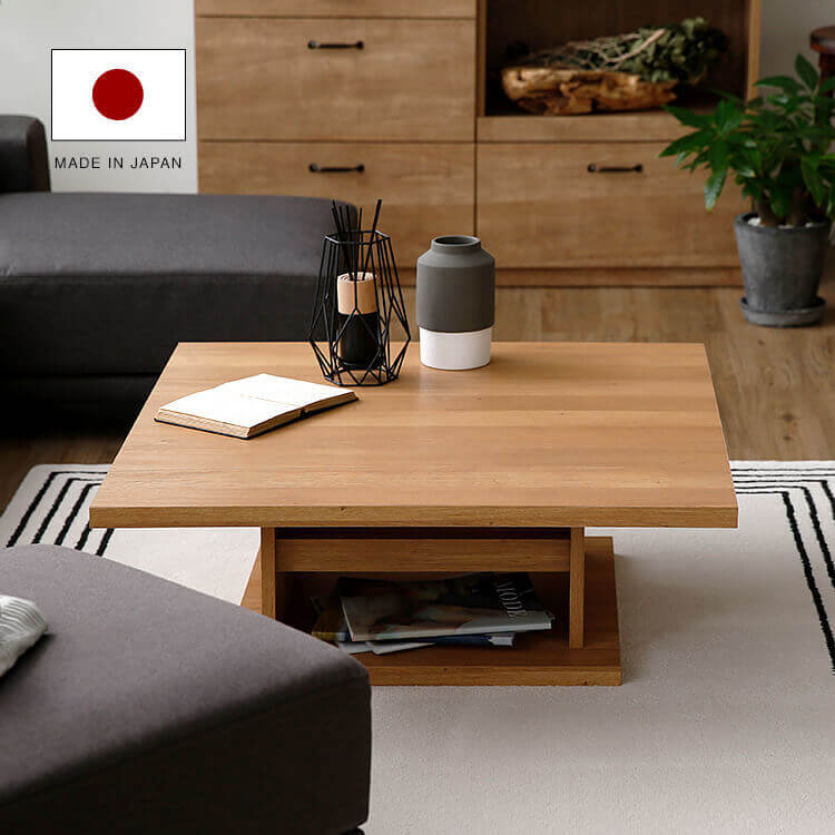 シンプルで普遍的ながらも、細部のクオリティーが効いて飽きを感じさせないスクエアデザイン。 家族や友人たちと囲む空間を、穏やかに引き立てるリビングの名脇役です。熟練の家具職人が一つ一つ丁寧に真心込めて作り上げた、日本製の当商品。 安価な輸入品とは違い、シンプルなデザインの中に精巧な美しさが光ります。 高級感溢れるTVボードが生み出すゆとりの空間をご堪能ください。土台を天板よりも小さくすることで、スタイリッシュな印象に。 T字にすることでデザイン性だけではなく実用性も高い一品に仕上がりました。目にした瞬間、天然木と見間違えるようなリアルで美しい木目調デザイン。 天然木を使用した家具とも調和し、落ち着いた雰囲気に。