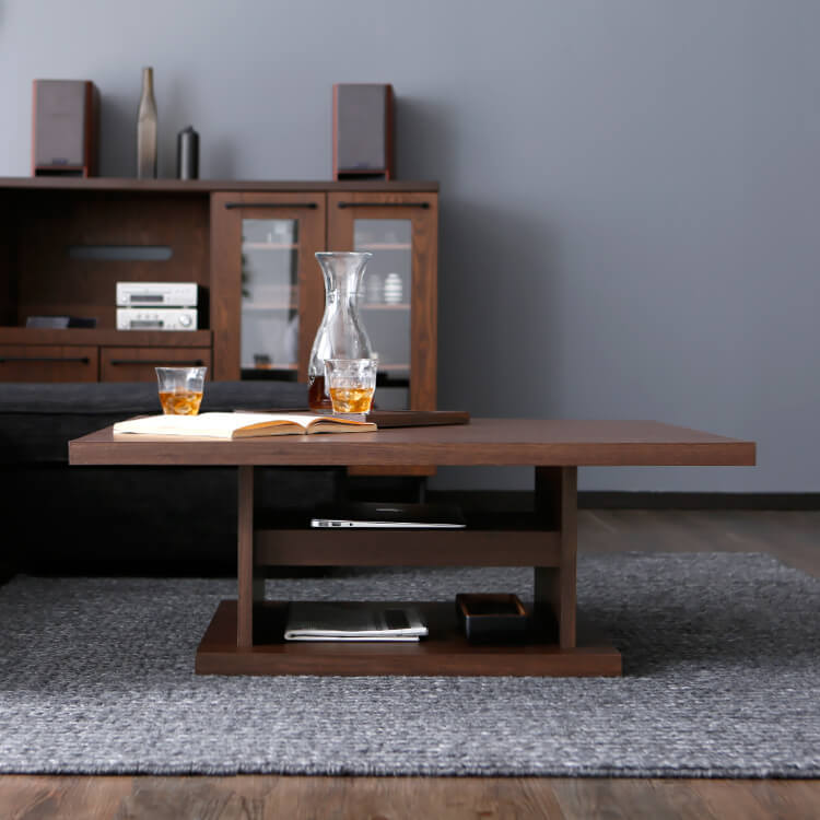センターテーブル T字型 収納付き 木目調 日本製 ローテーブル リビングテーブル