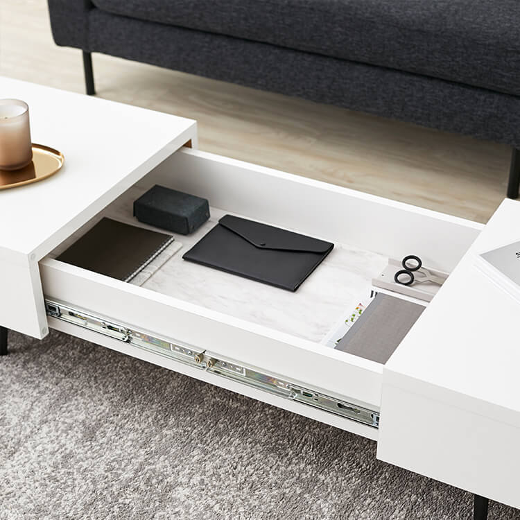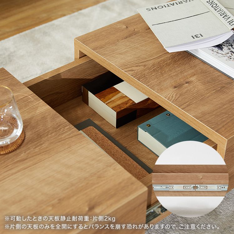 センターテーブル 長方形 リビングテーブル ストーン調 スライド収納 引き出し 日本製