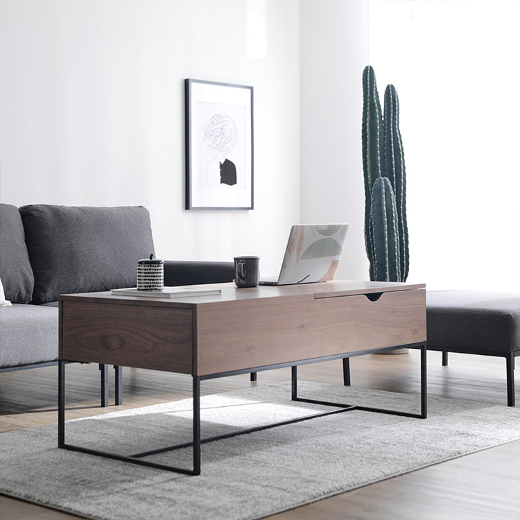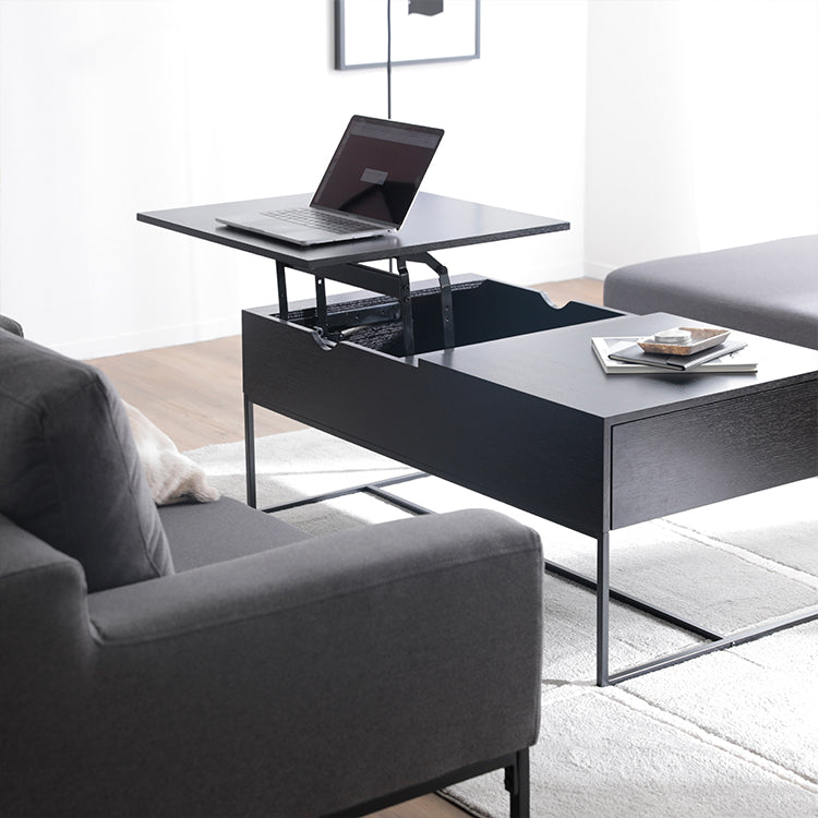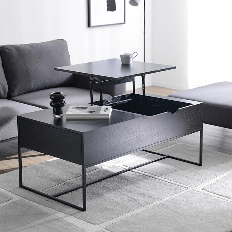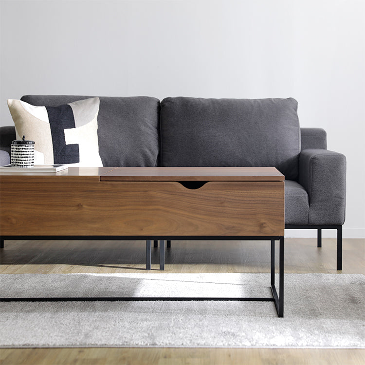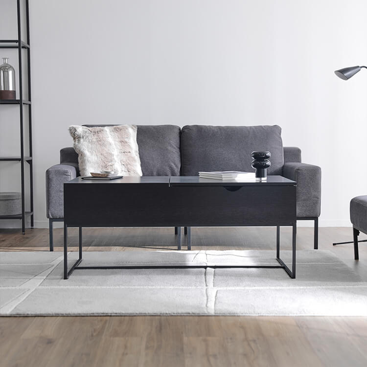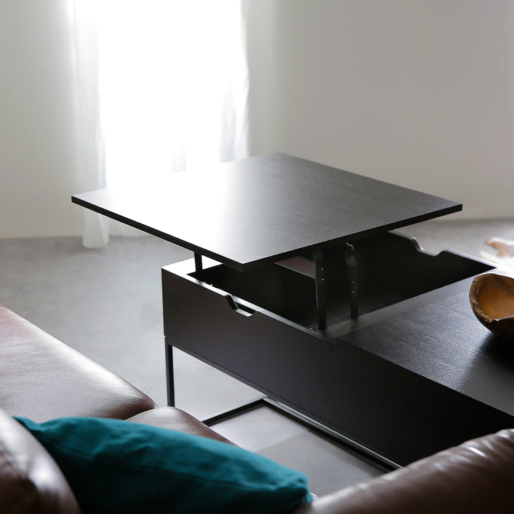 テーブルがくつろぎのエッセンスに。サイドテーブルよりも広々と、センターテーブルよりもあなたに近く。新たなくつろぎのシーンを作る、見た目も美しい人気のリフトアップテーブルです。スタイリッシュな金属の脚に、温かみのある木のテーブル。異素材を組み合わせたモダンなデザインは、様々なインテリアに溶け込んでくれます。何よりの魅力は、テーブルの高さを変えられる事。高さを変えて、書斎で行っていたPCや読書などの作業がソファのあるリビングでも快適に行えます。※開閉時に指を挟まない様にご注意下さい。ソファに座ってテーブルを使用すると、前かがみになり使いづらいこともありますが、当テーブルなら問題解決。無理のない姿勢でお使いいただけます。女性のメイク時や、お子様の宿題などにもおすすめです。