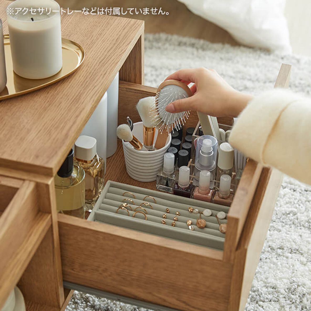 テーブルドレッサー ロータイプ 鏡台 収納 メイク 化粧台 ミラー 引き出し 木目調